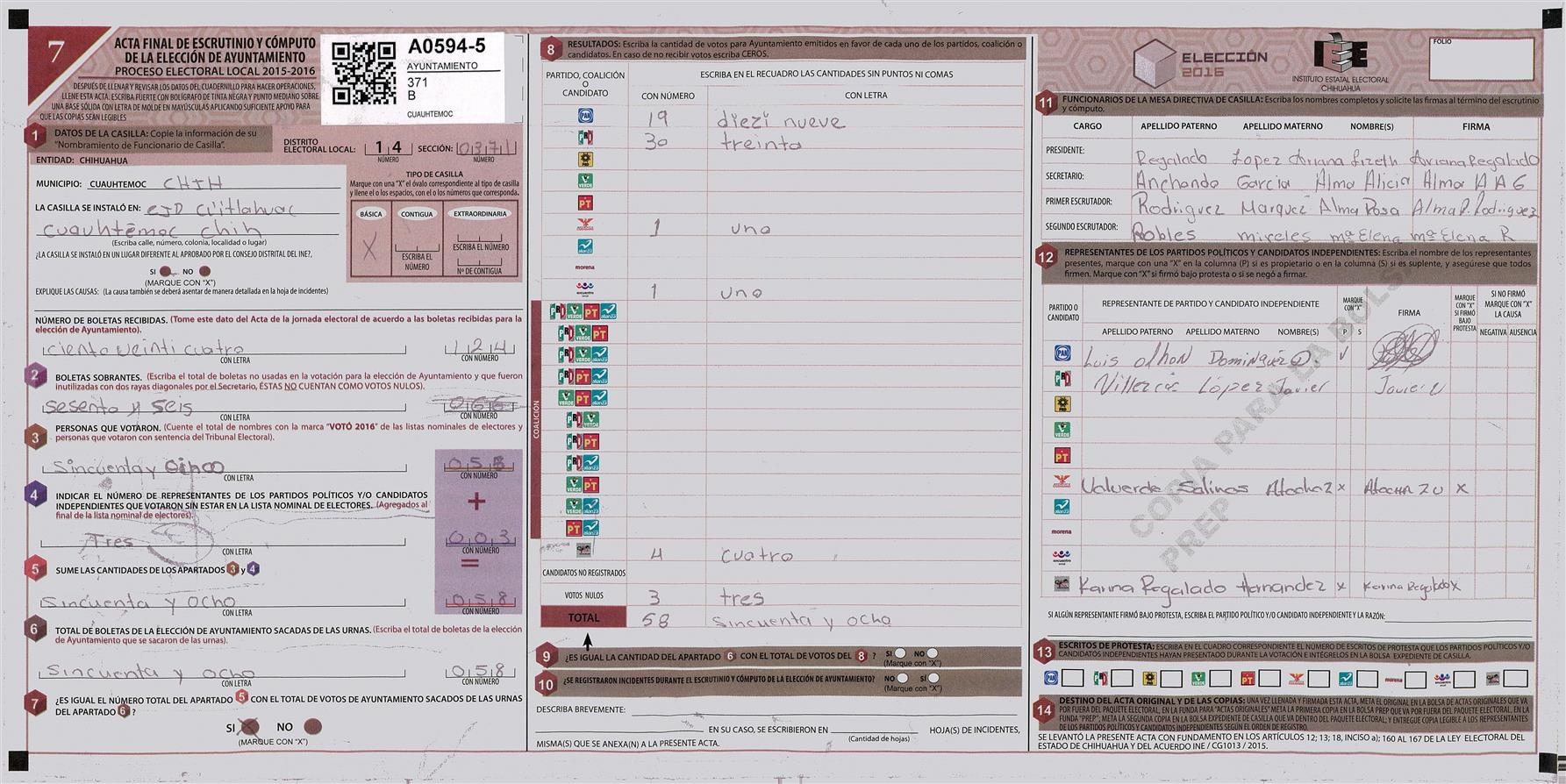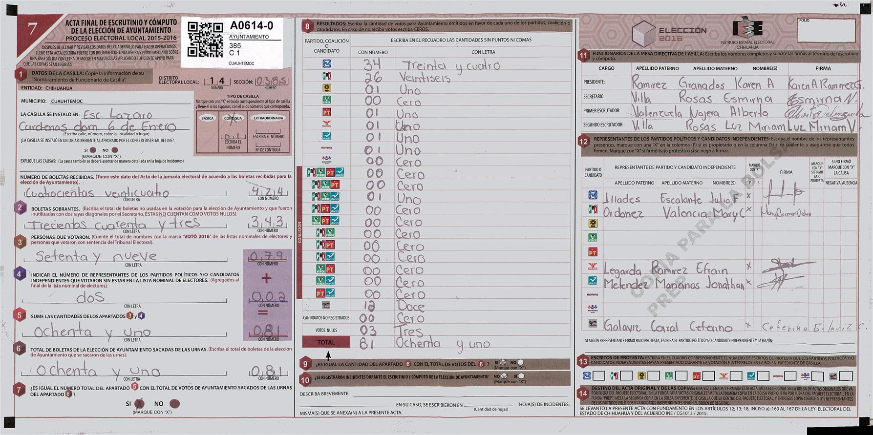 RESULTADOS POR CASILLA DEL MUNICIPIO DE CUAUHTEMOC PARA LA ELECCIÓN DE AYUNTAMIENTO
