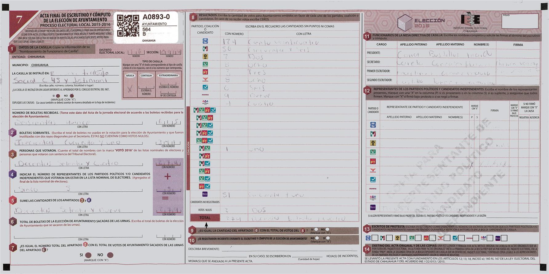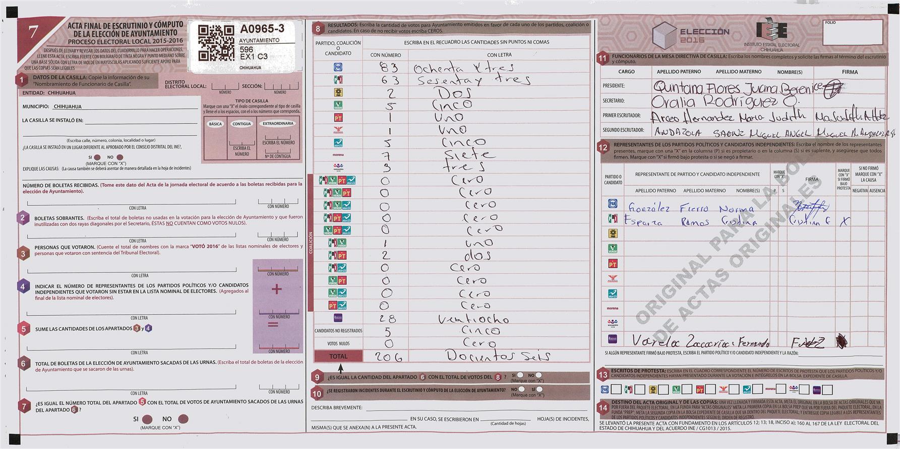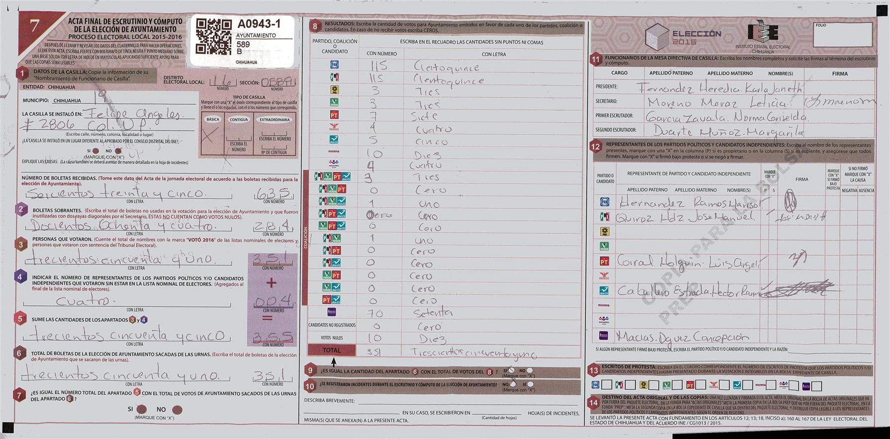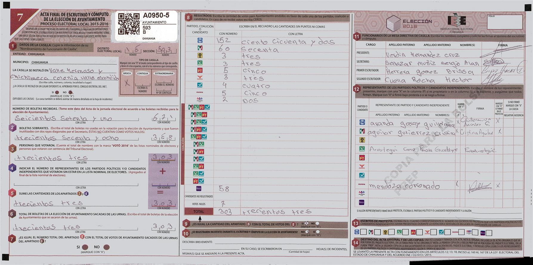 RESULTADOS POR CASILLA DEL MUNICIPIO DE CHIHUAHUA PARA LA ELECCIÓN DE AYUNTAMIENTO