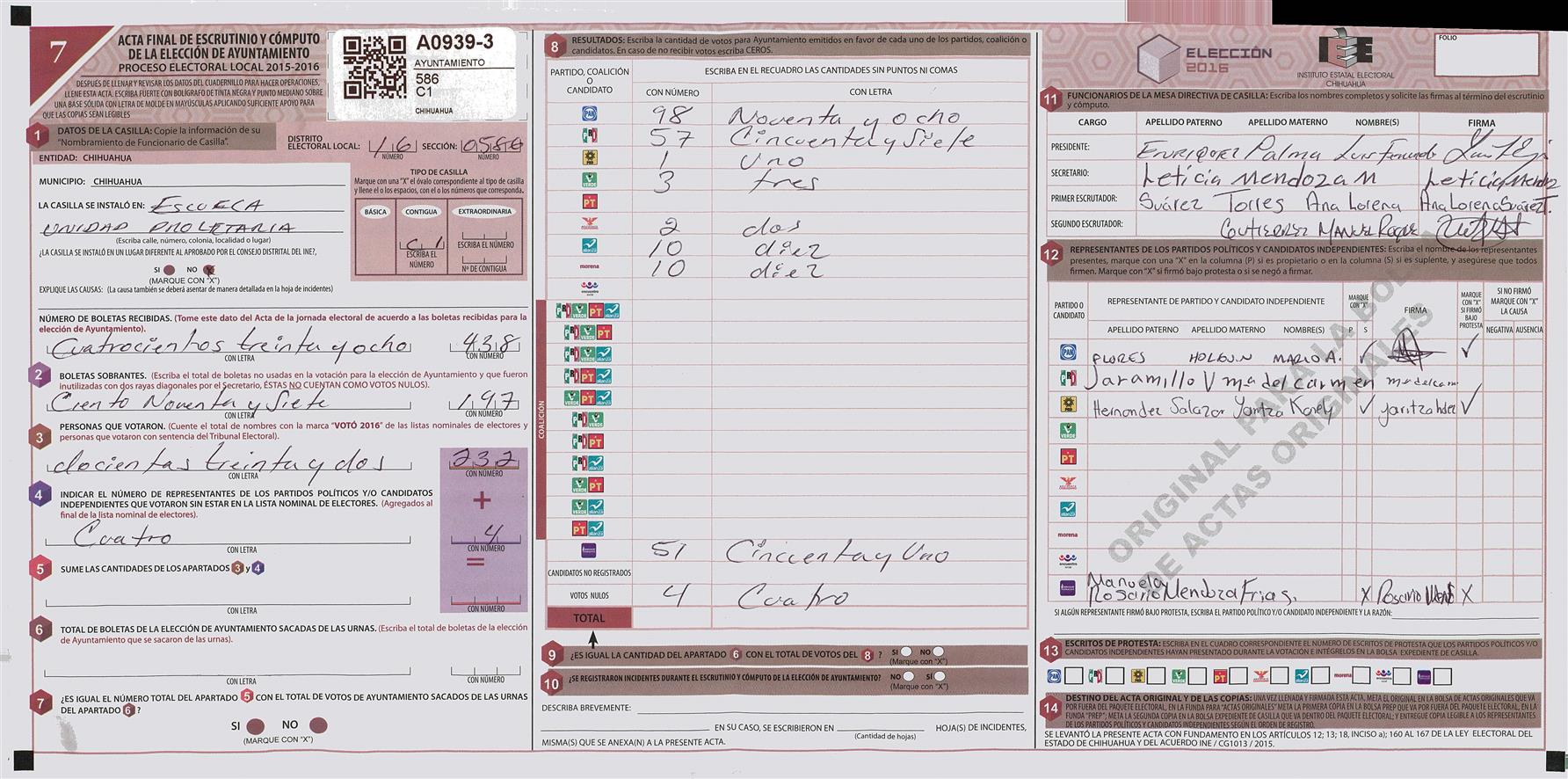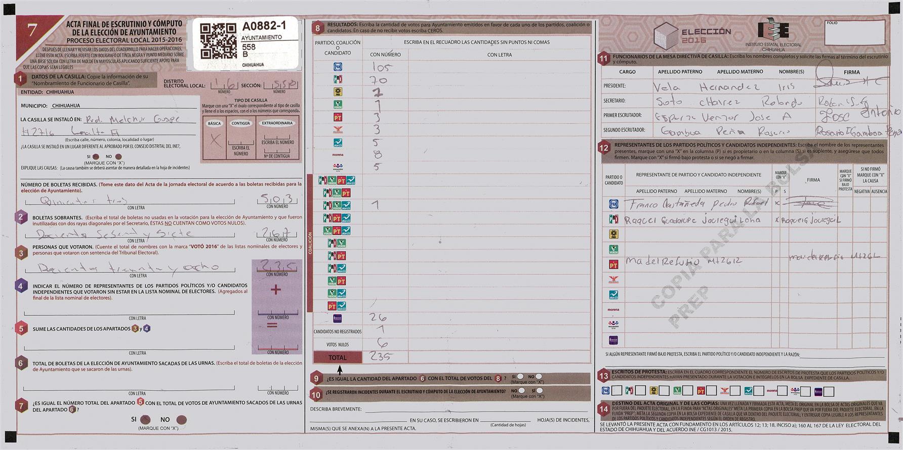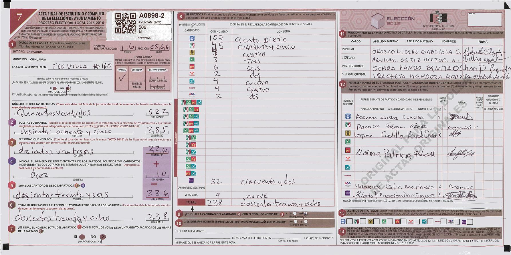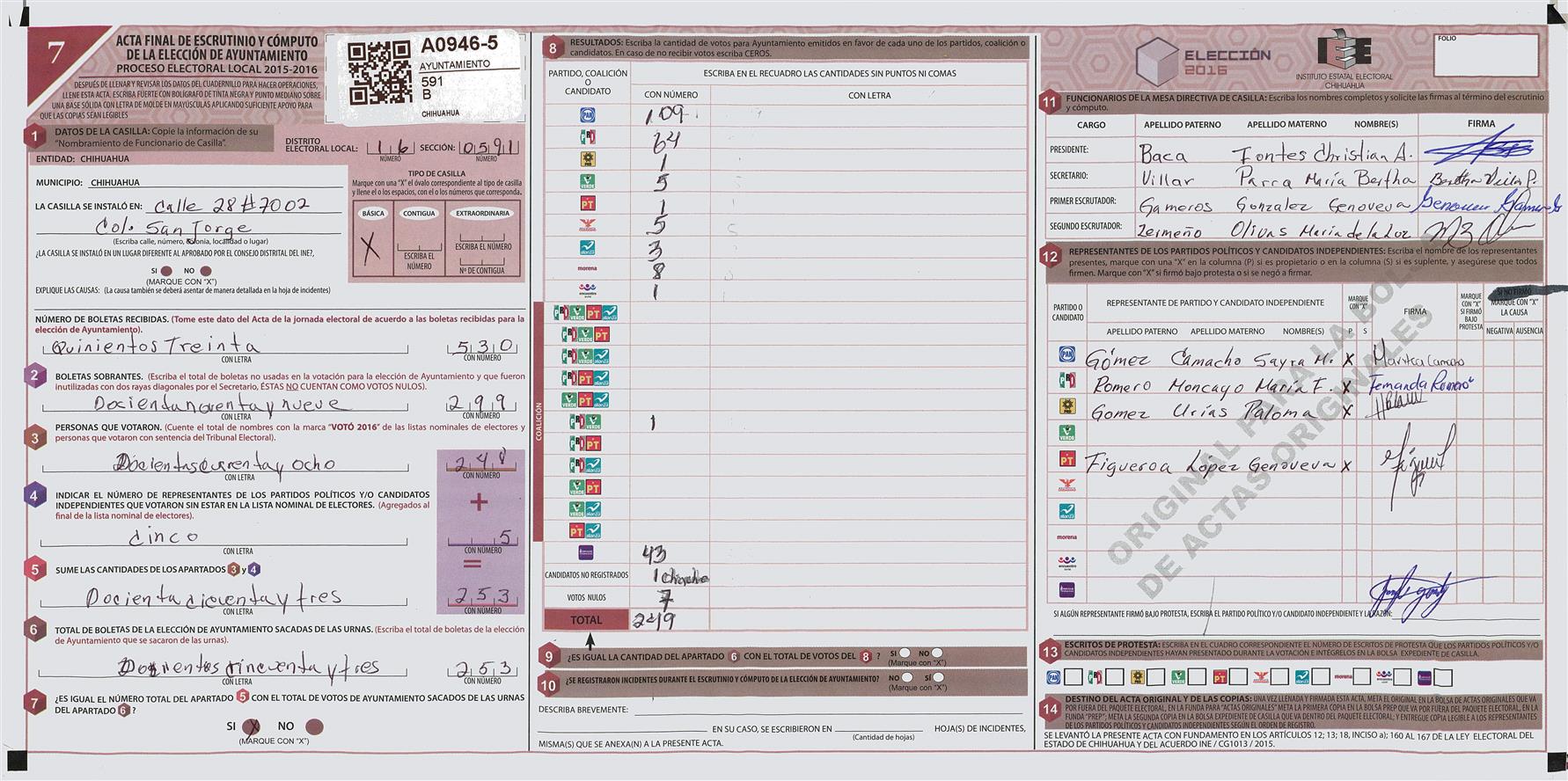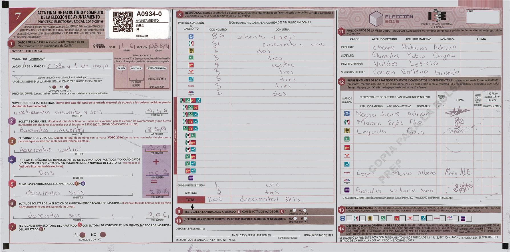 RESULTADOS POR CASILLA DEL MUNICIPIO DE CHIHUAHUA PARA LA ELECCIÓN DE AYUNTAMIENTO