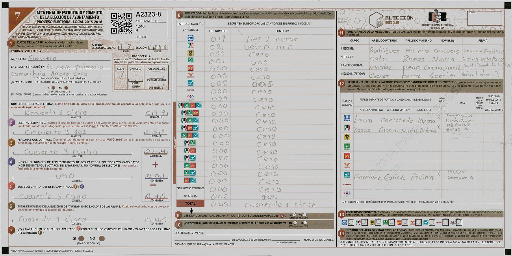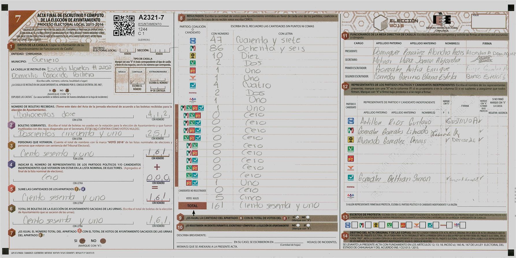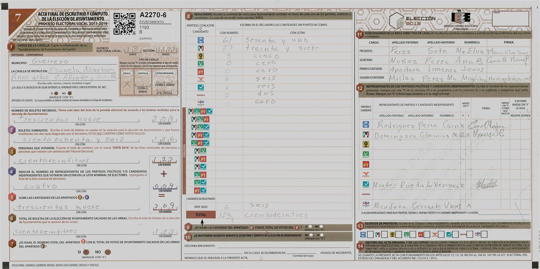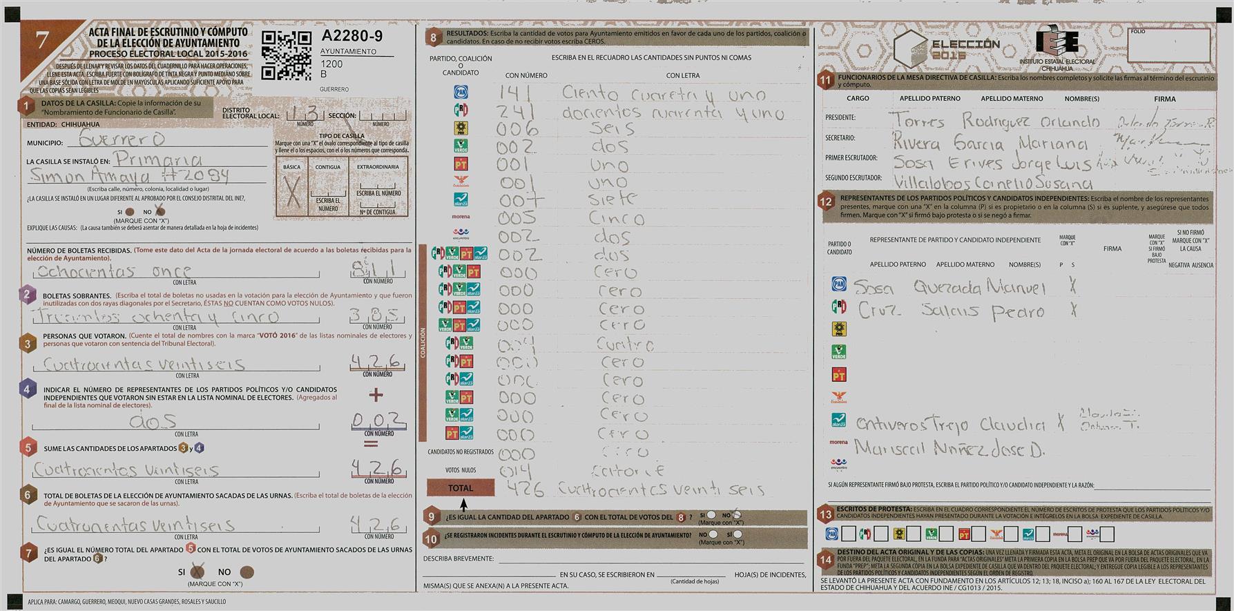 RESULTADOS POR CASILLA DEL MUNICIPIO DE GUERRERO PARA LA ELECCIÓN DE AYUNTAMIENTO