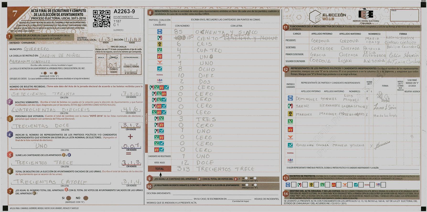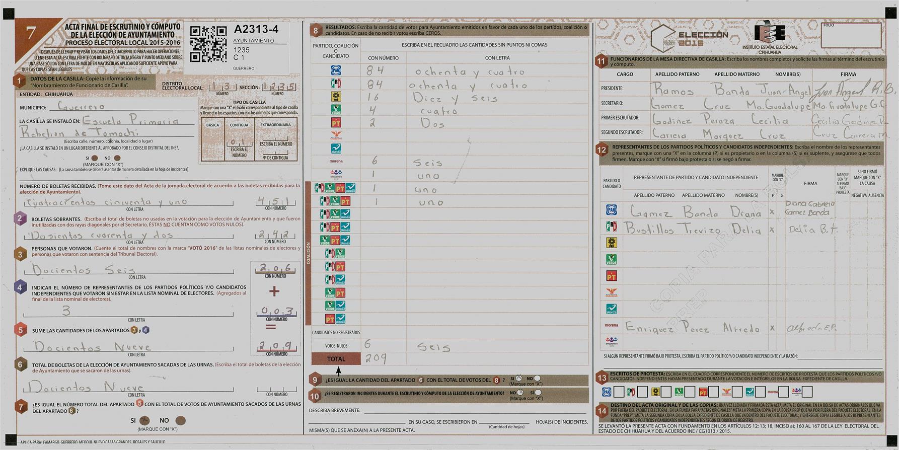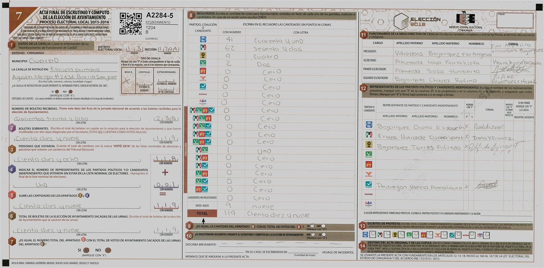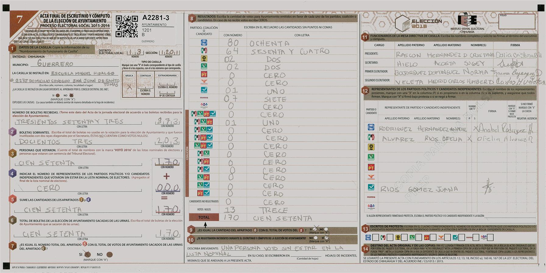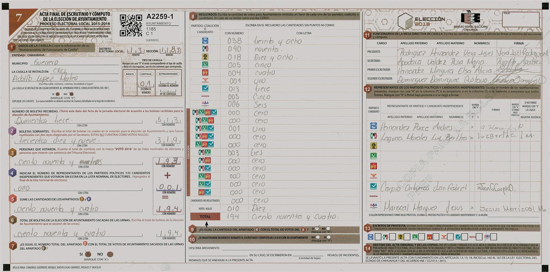 RESULTADOS POR CASILLA DEL MUNICIPIO DE GUERRERO PARA LA ELECCIÓN DE AYUNTAMIENTO