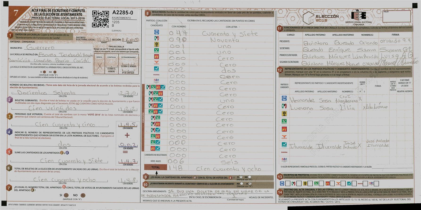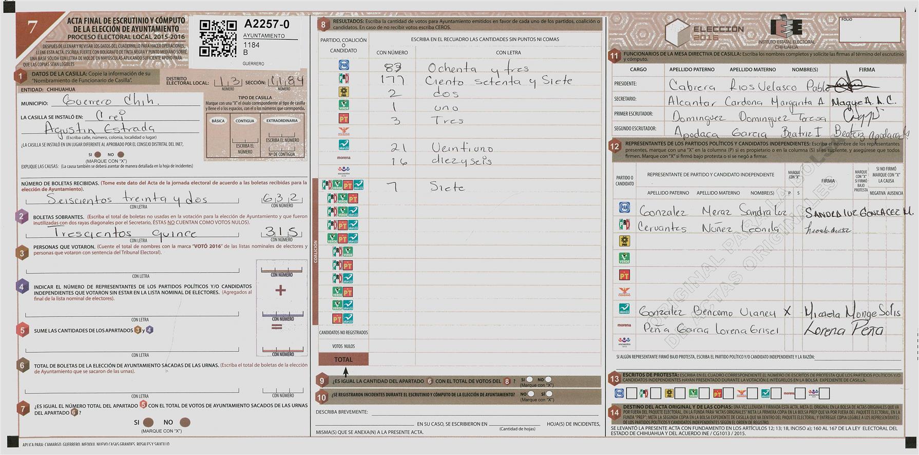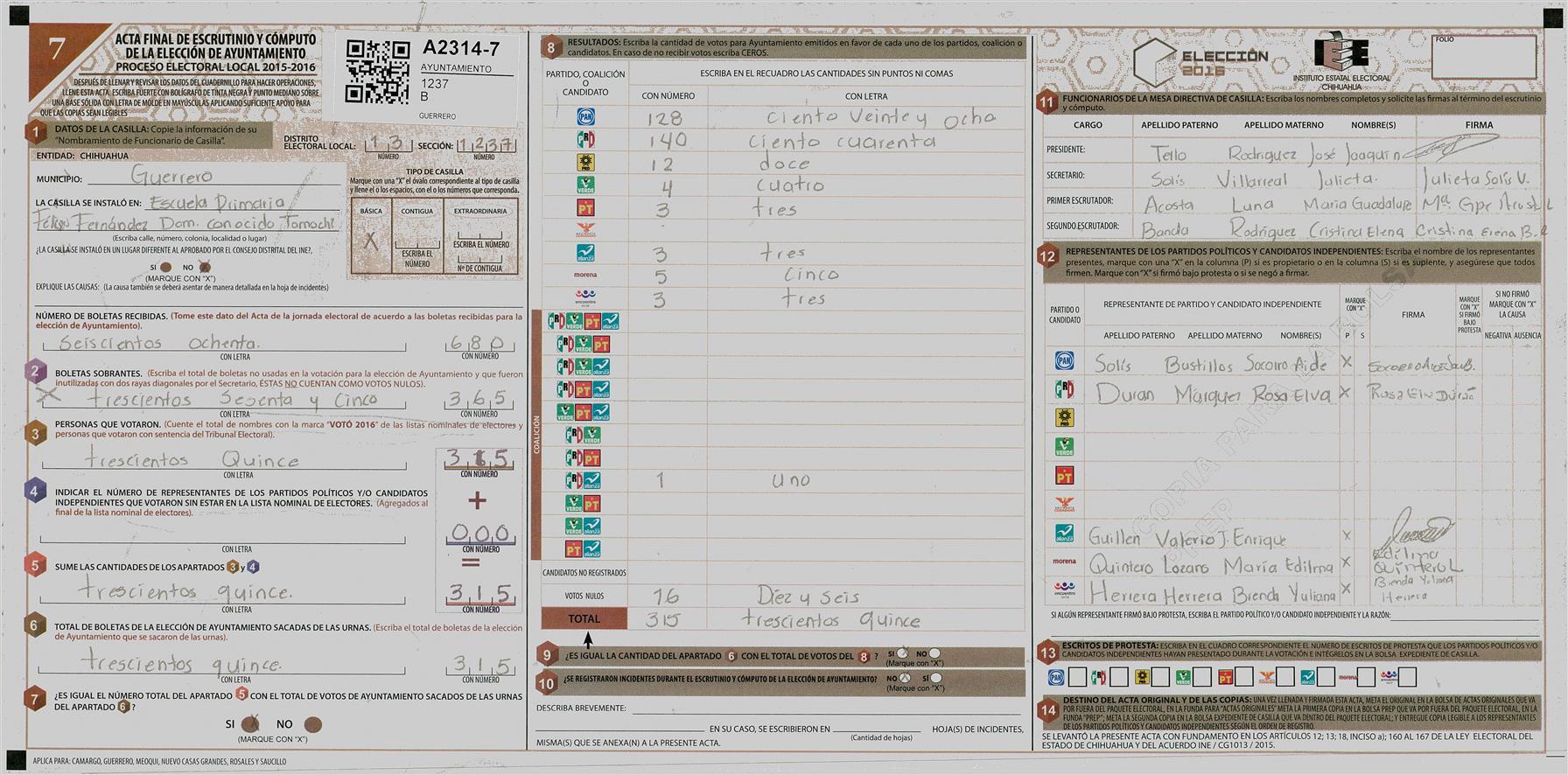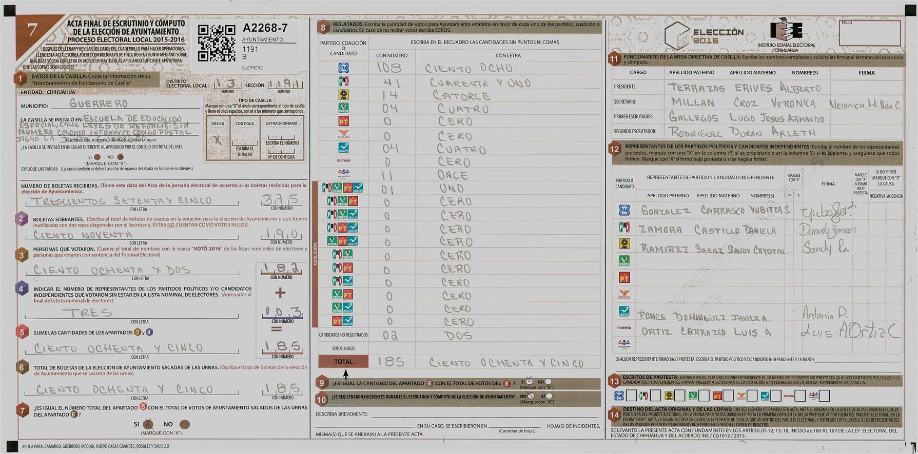 RESULTADOS POR CASILLA DEL MUNICIPIO DE GUERRERO PARA LA ELECCIÓN DE AYUNTAMIENTO
