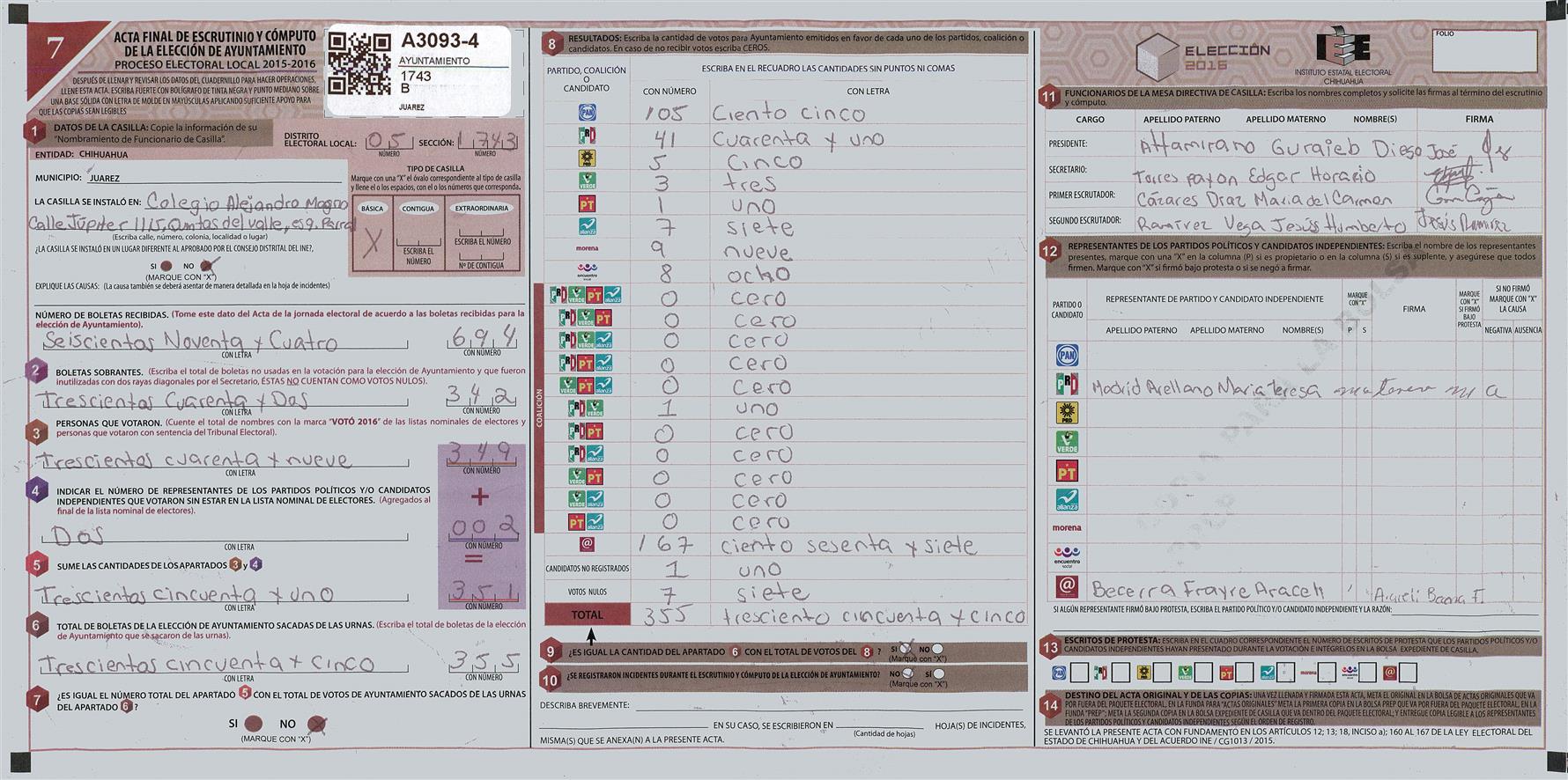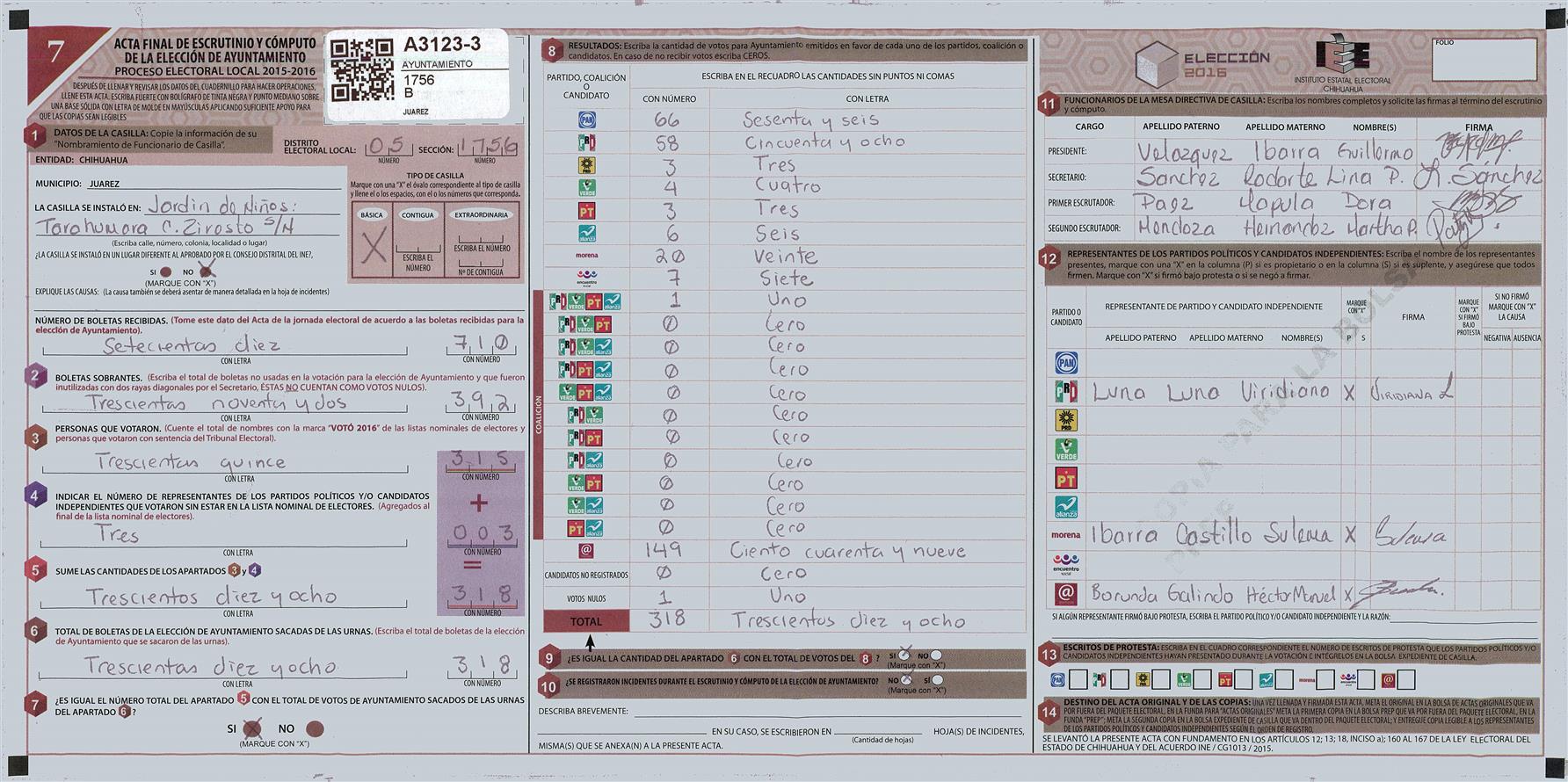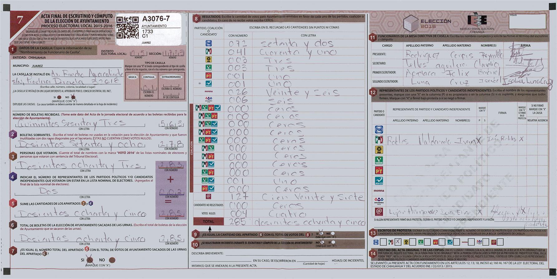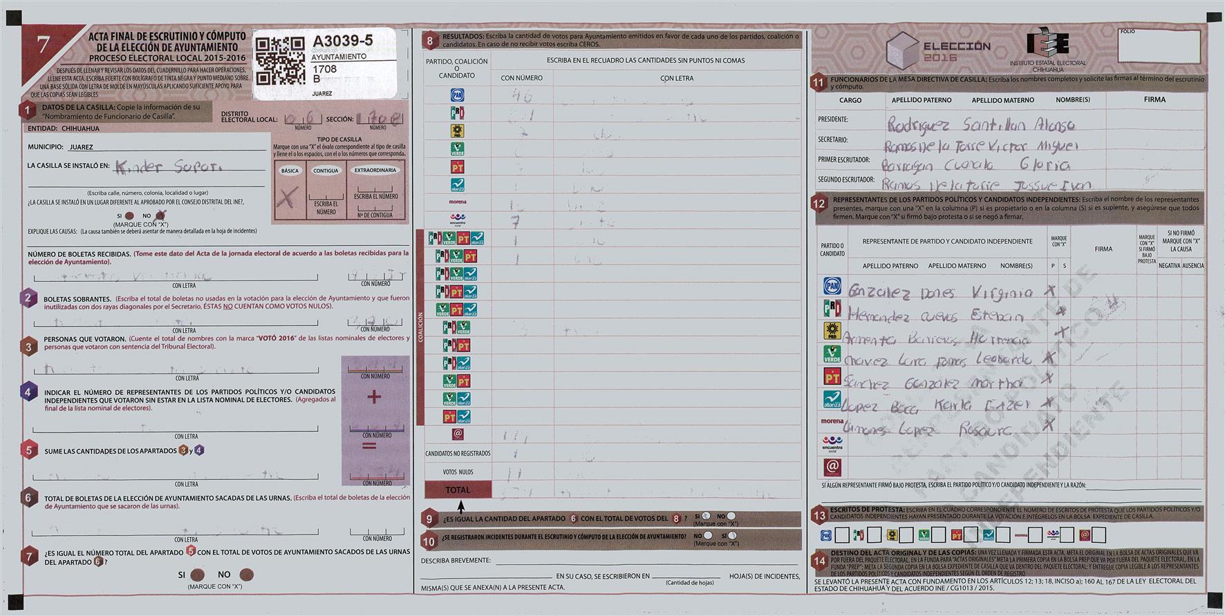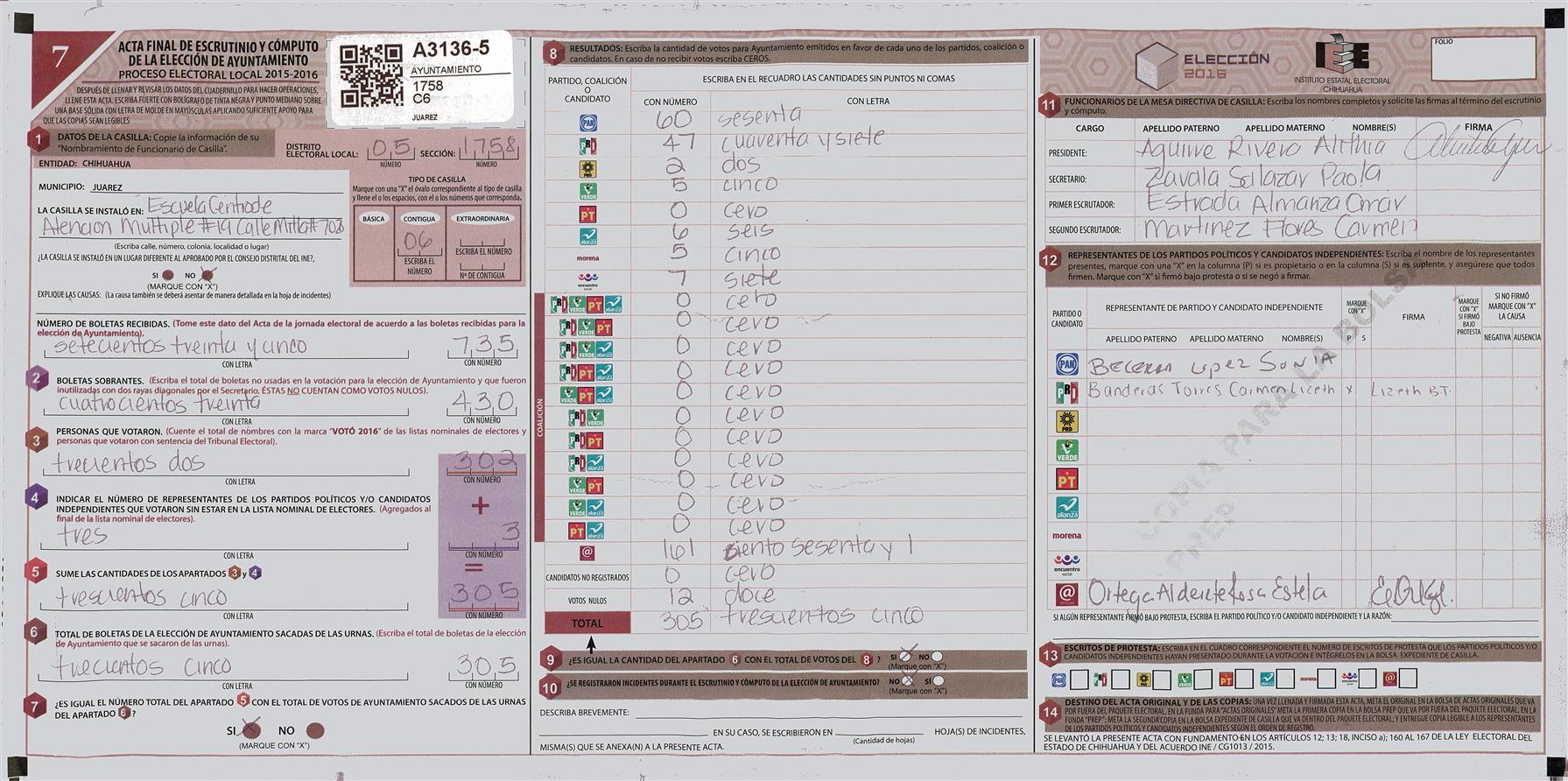 RESULTADOS POR CASILLA DEL MUNICIPIO DE JUAREZ PARA LA ELECCIÓN DE AYUNTAMIENTO