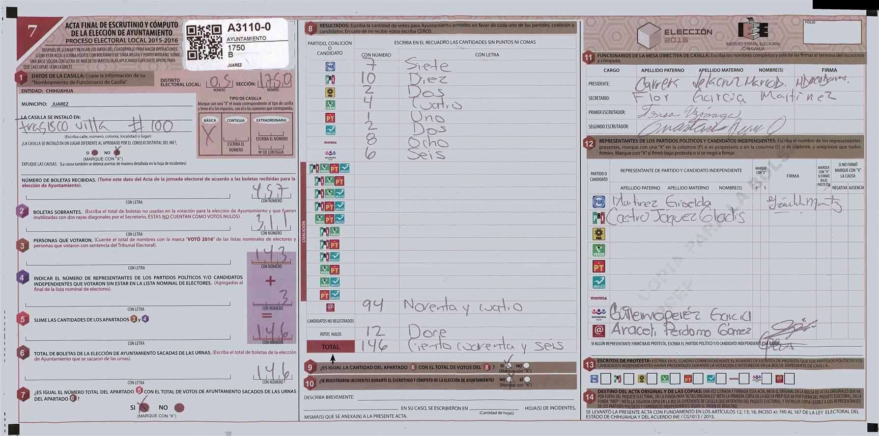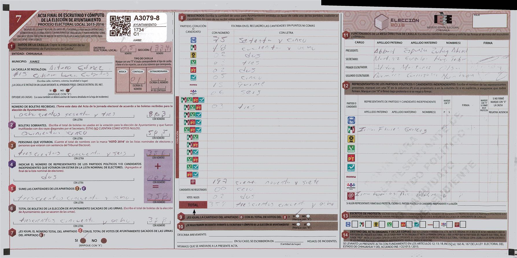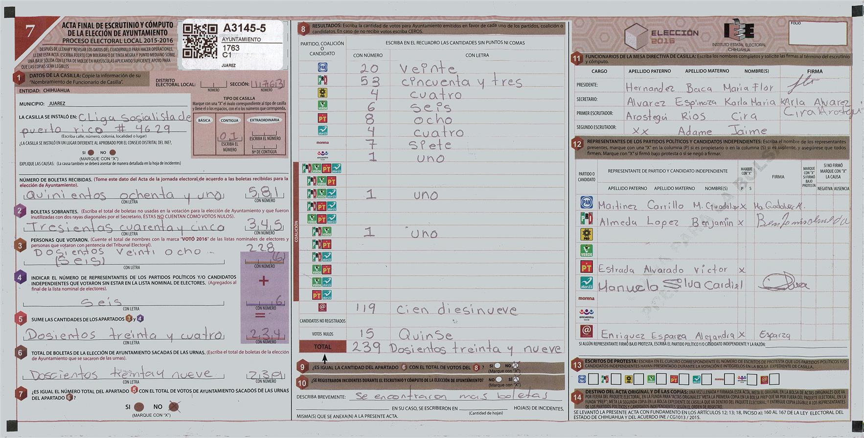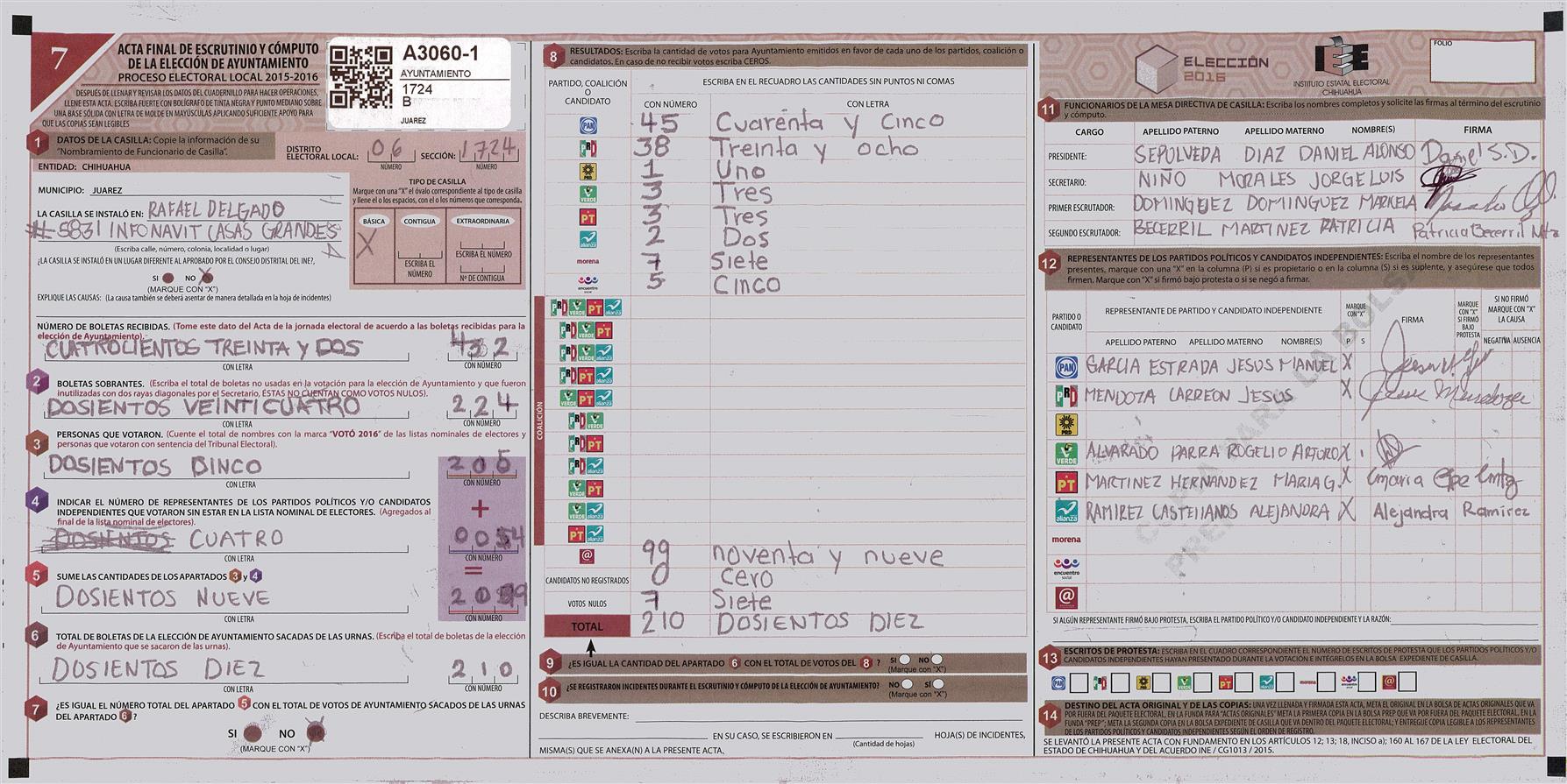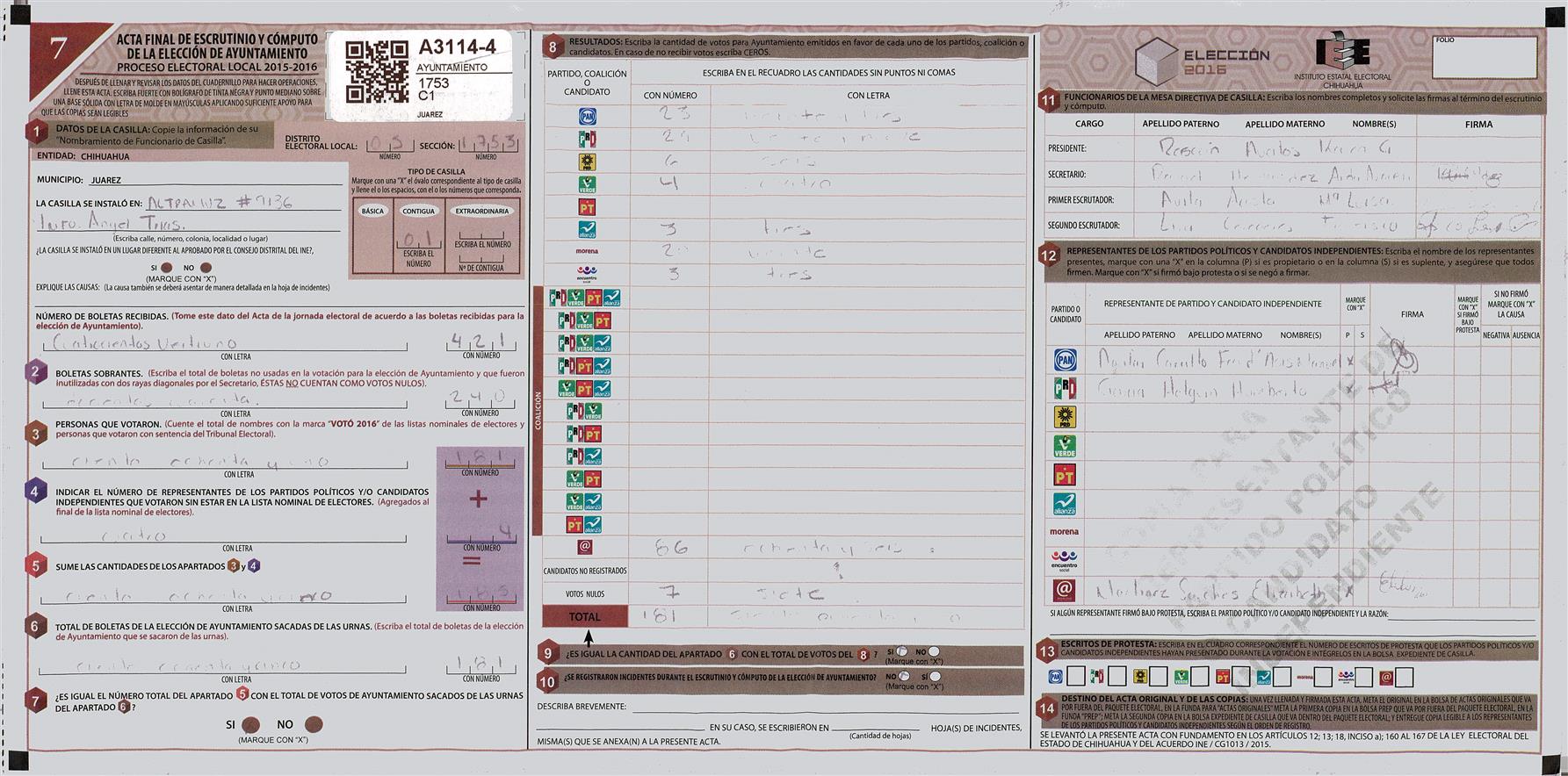 RESULTADOS POR CASILLA DEL MUNICIPIO DE JUAREZ PARA LA ELECCIÓN DE AYUNTAMIENTO