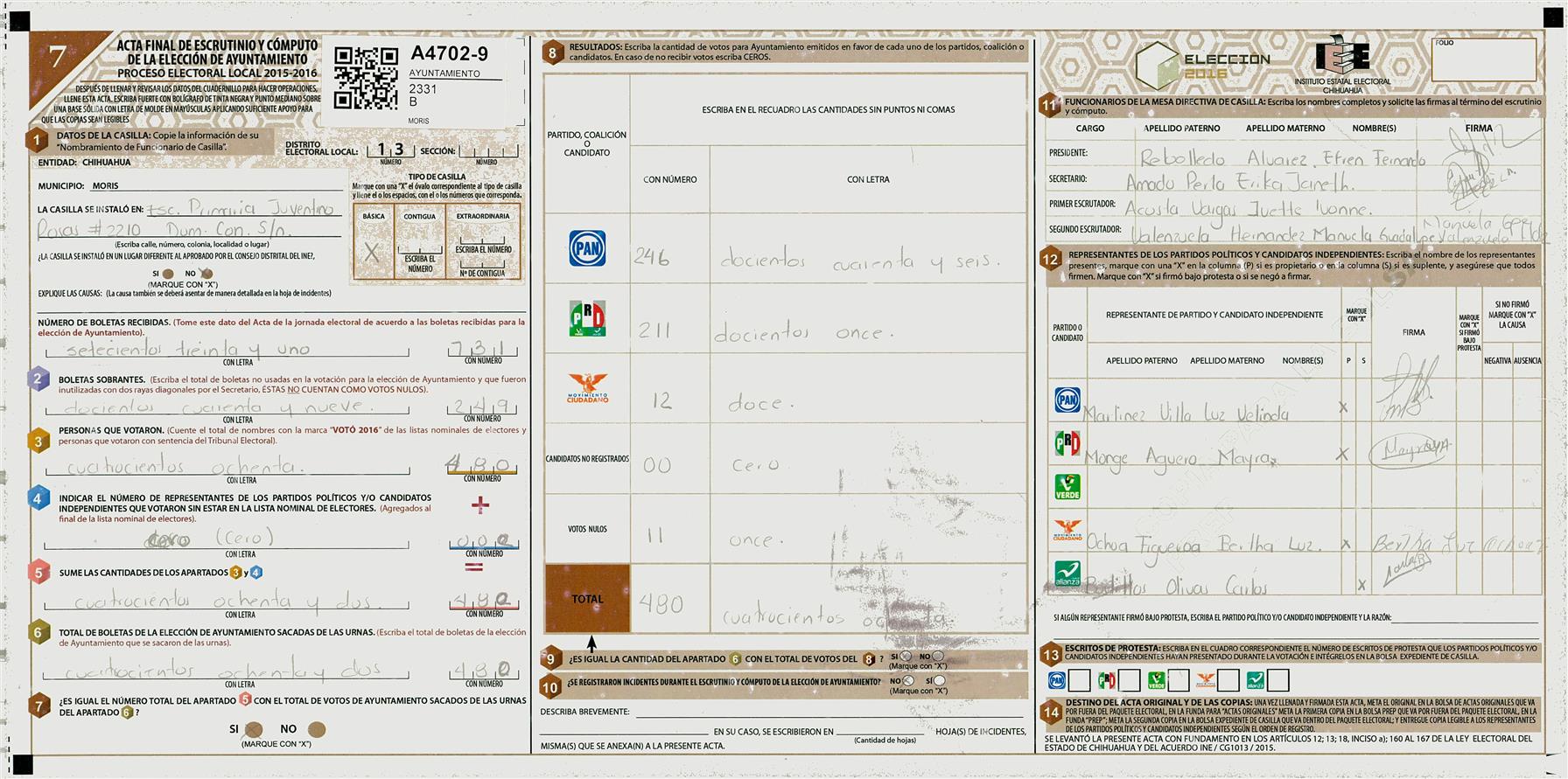 RESULTADOS POR CASILLA DEL MUNICIPIO DE MORIS PARA LA ELECCIÓN DE AYUNTAMIENTO