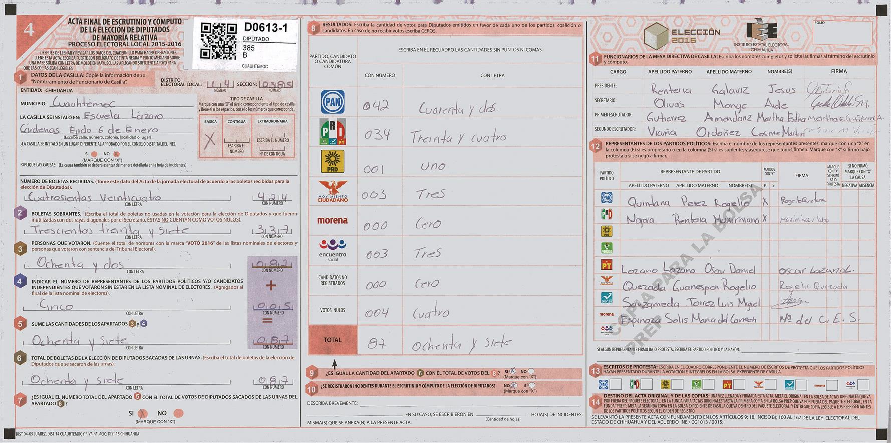 RESULTADOS POR CASILLA DEL MUNICIPIO DE 14 CUAUHTEMOC PARA LA ELECCIÓN DE DIPUTADOS