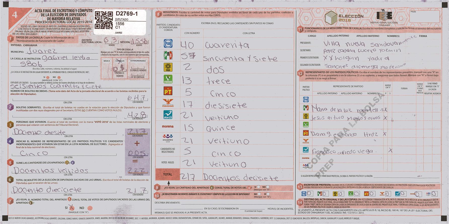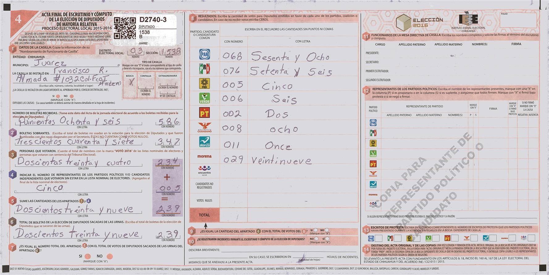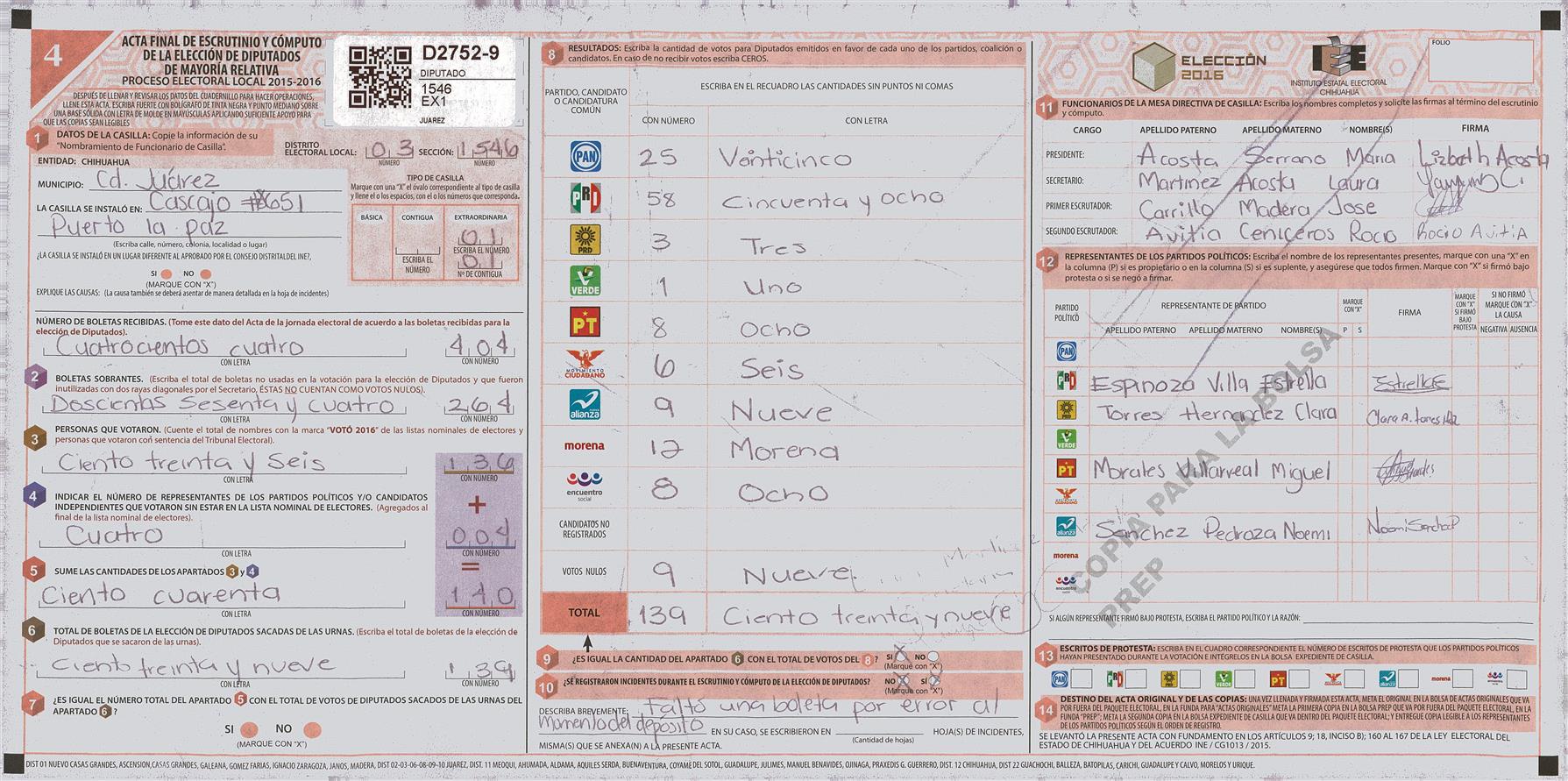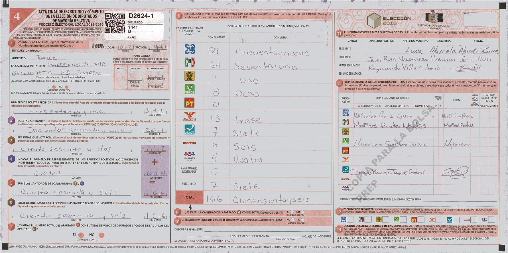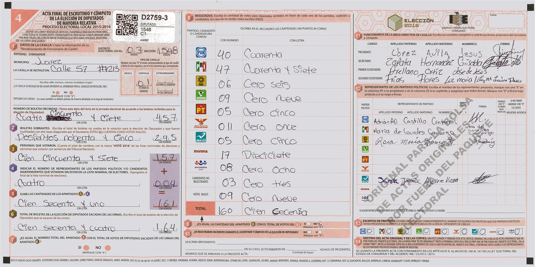 RESULTADOS POR CASILLA DEL MUNICIPIO DE 03 JUAREZ PARA LA ELECCIÓN DE DIPUTADOS
