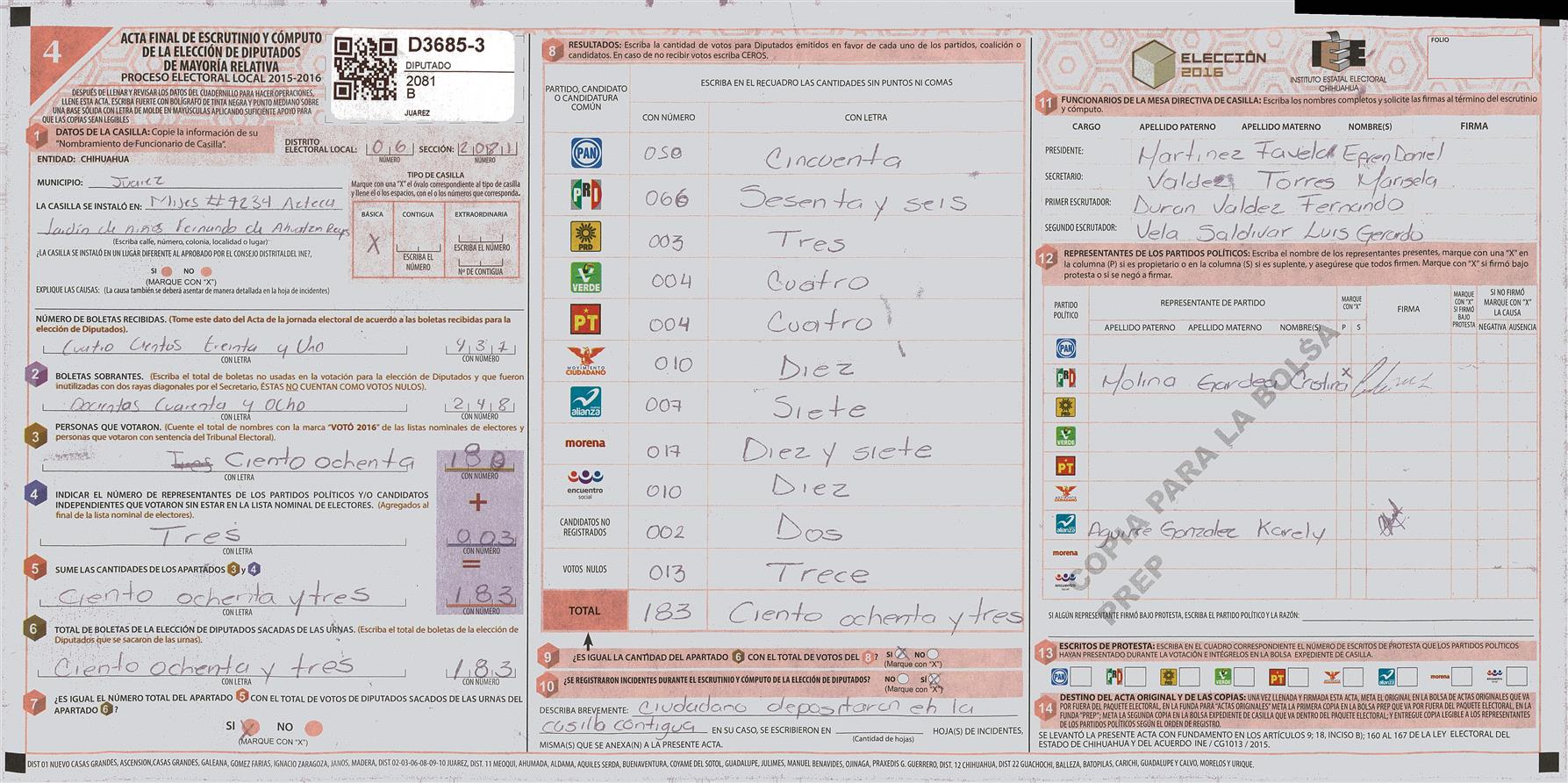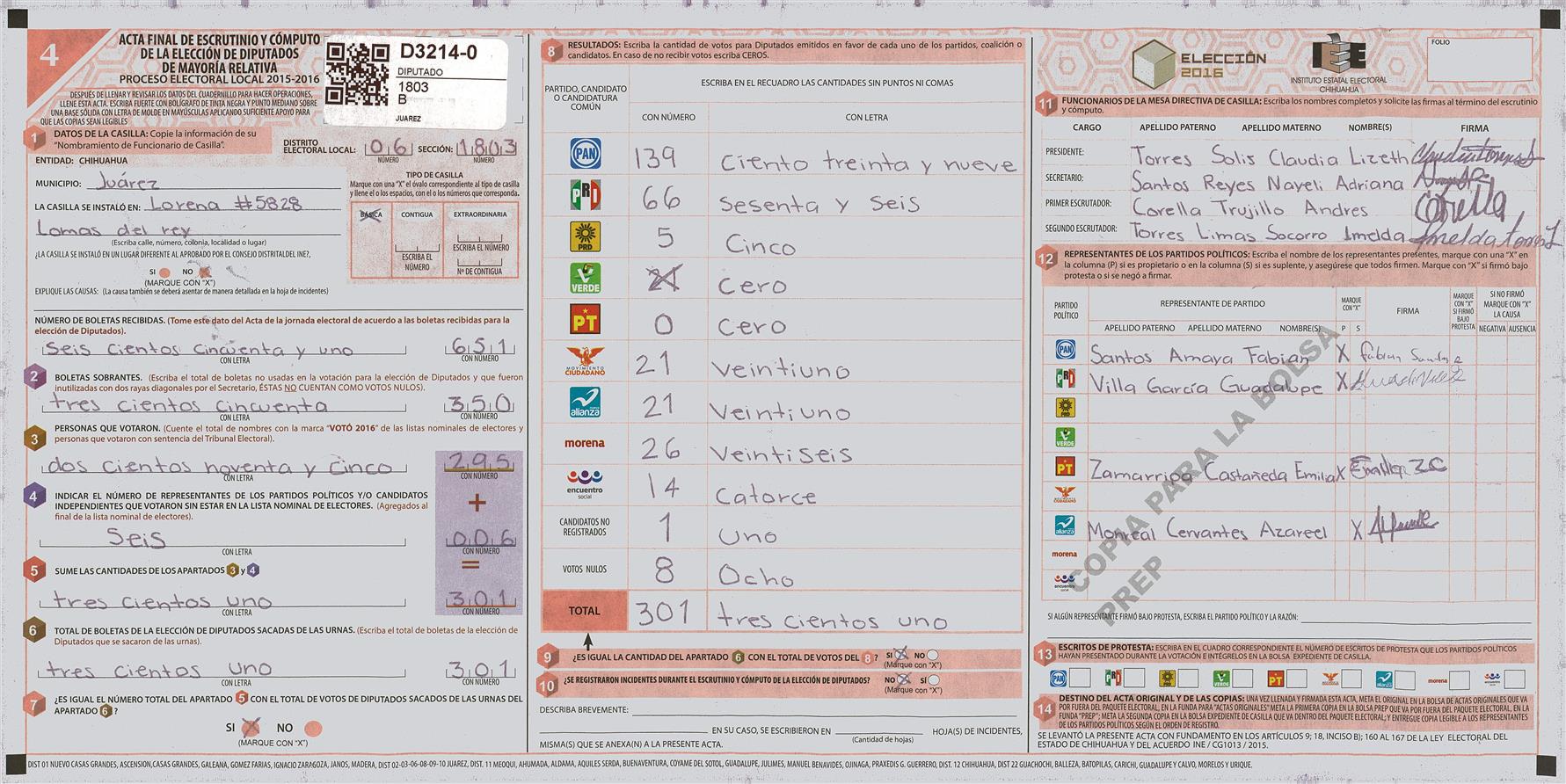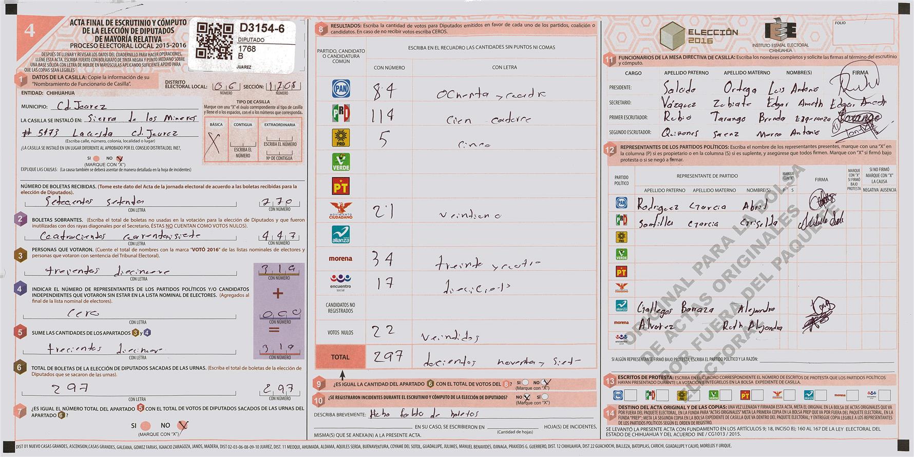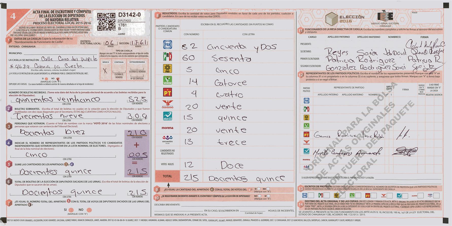 RESULTADOS POR CASILLA DEL MUNICIPIO DE 06 JUAREZ PARA LA ELECCIÓN DE DIPUTADOS