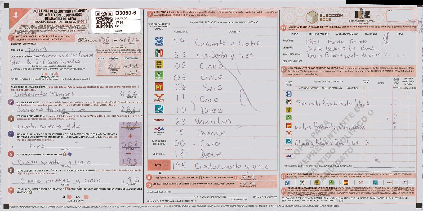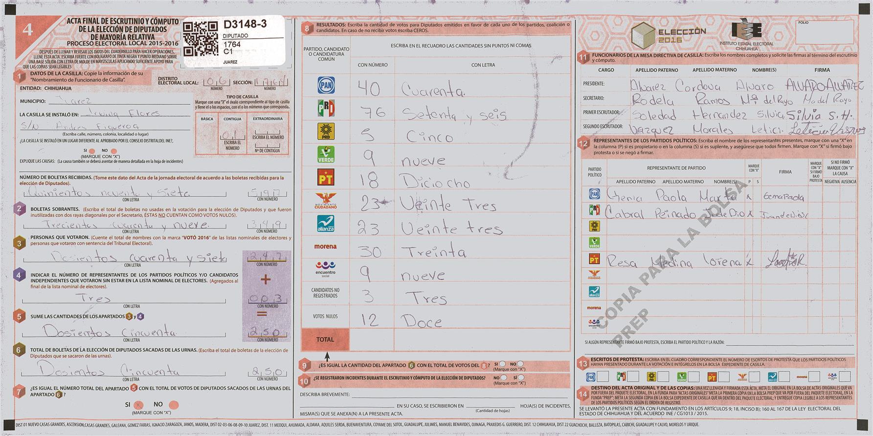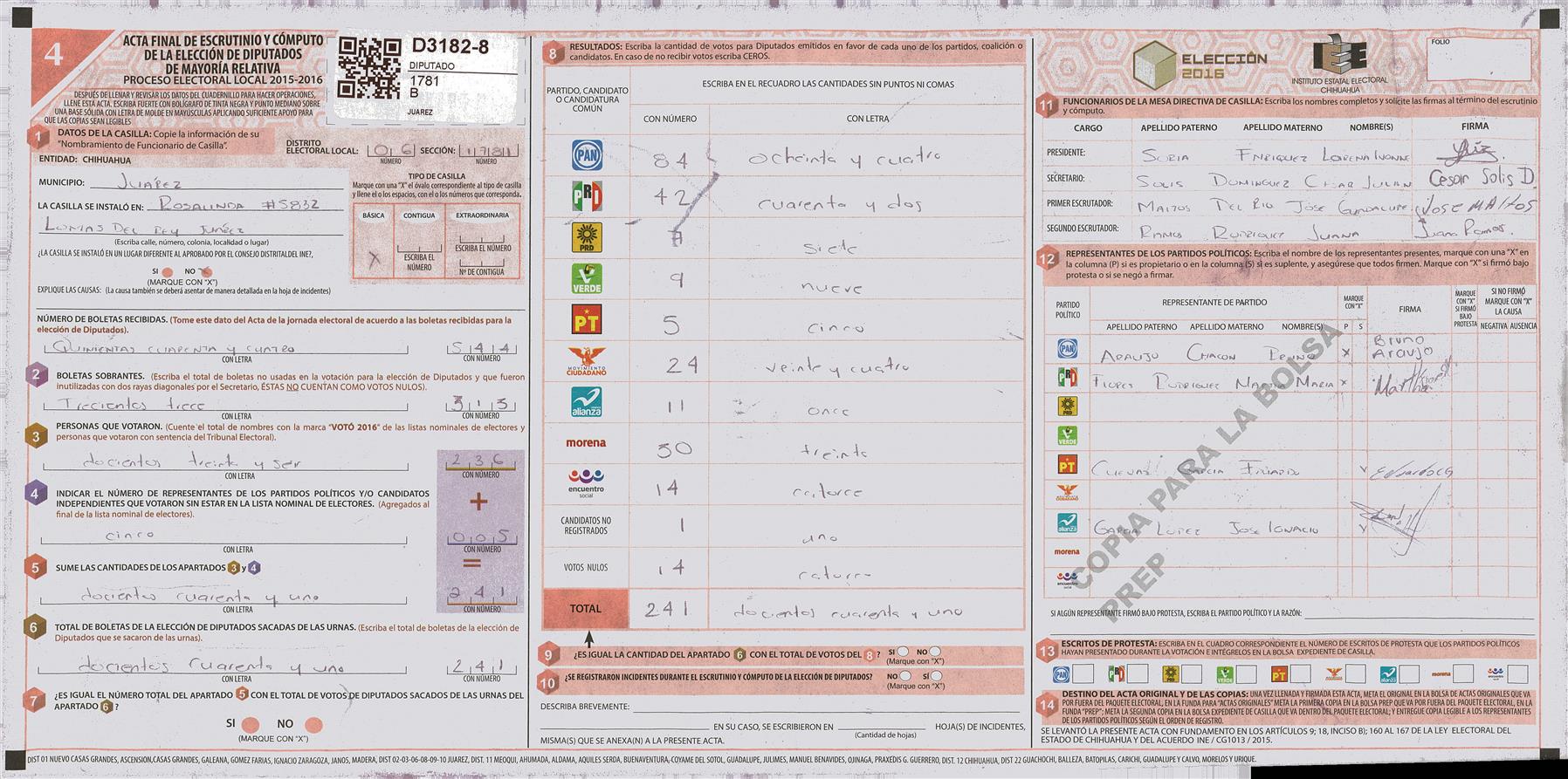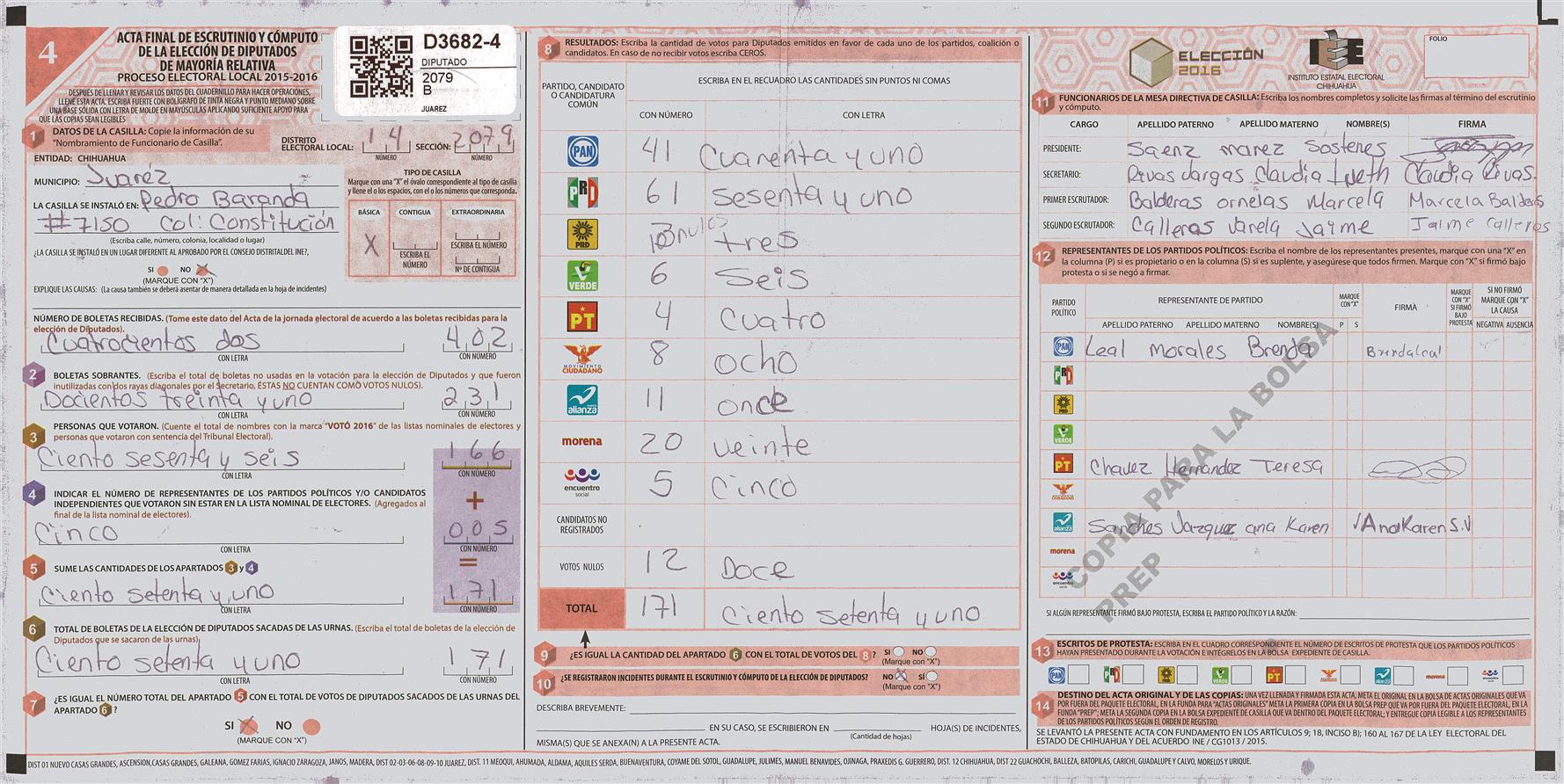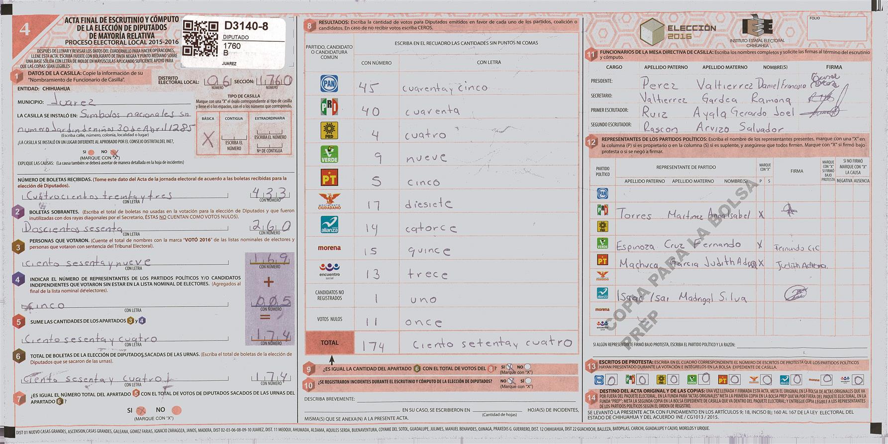 RESULTADOS POR CASILLA DEL MUNICIPIO DE 06 JUAREZ PARA LA ELECCIÓN DE DIPUTADOS