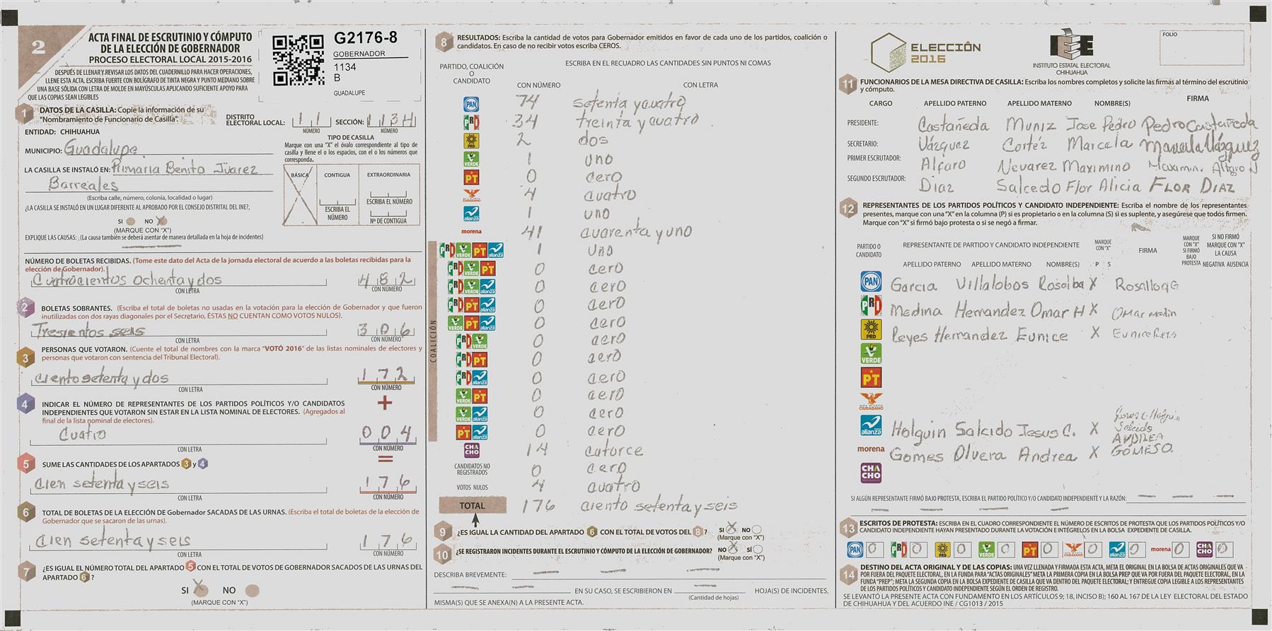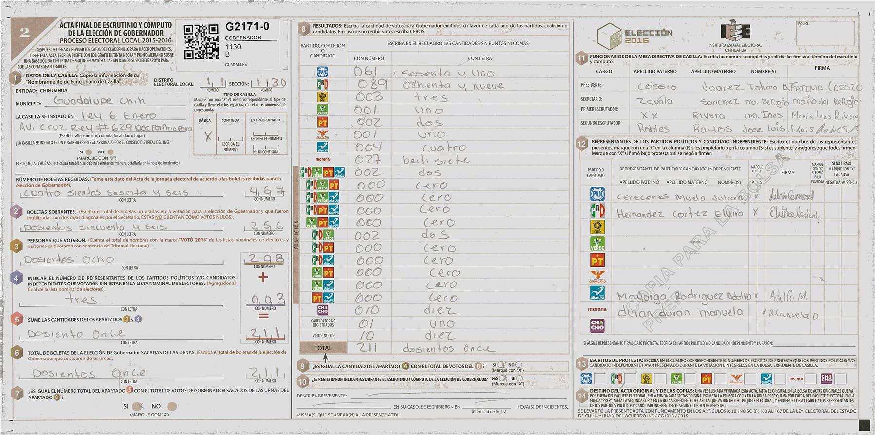 RESULTADOS POR CASILLA DEL MUNICIPIO DE GUADALUPE D. B PARA LA ELECCIÓN DE GOBERNADOR