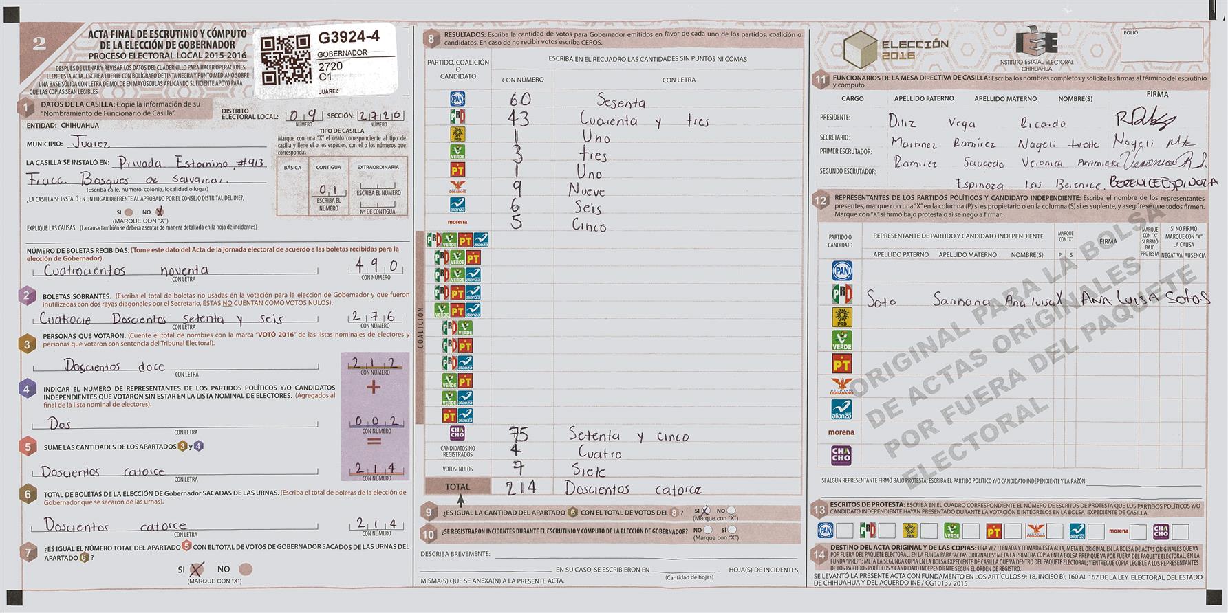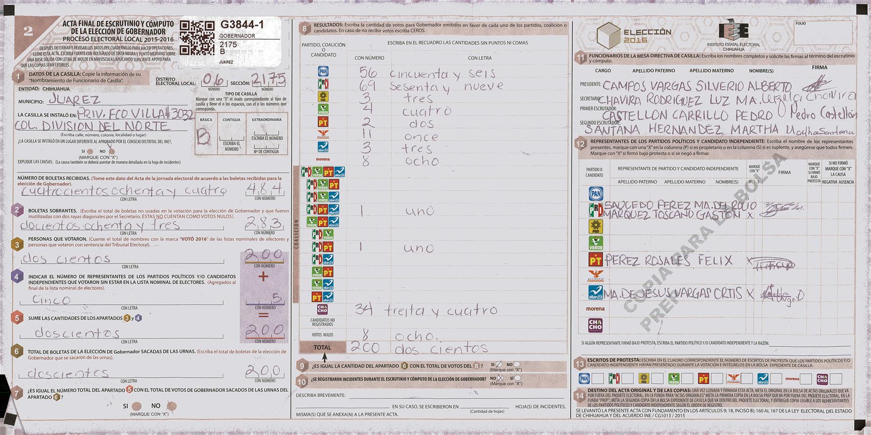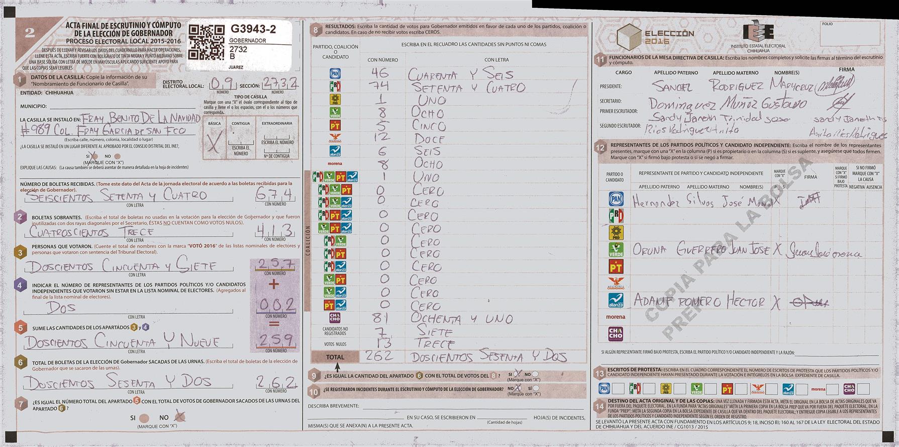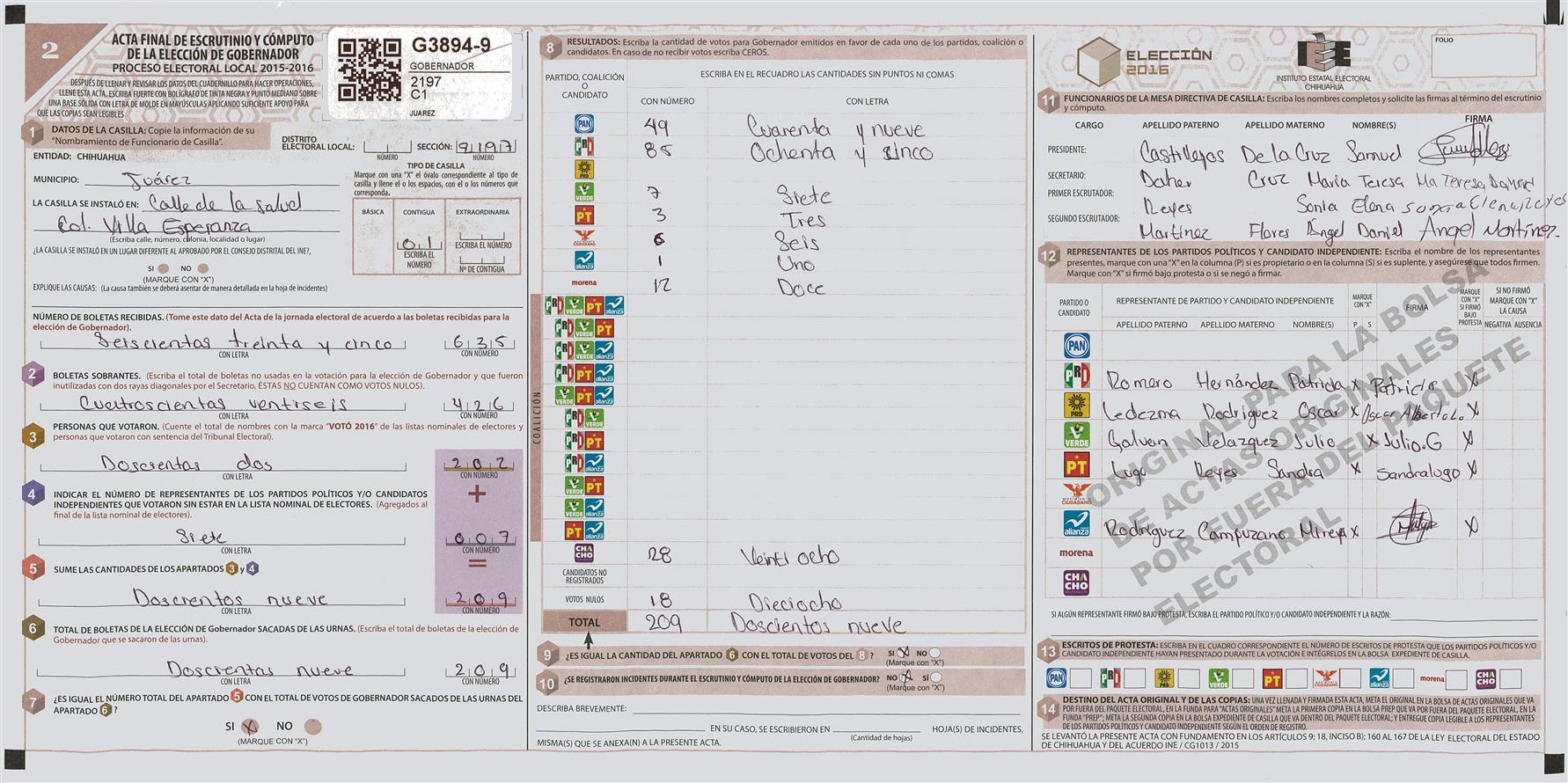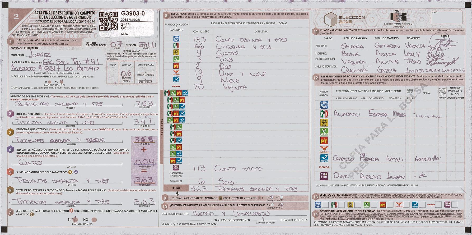 RESULTADOS POR CASILLA DEL MUNICIPIO DE JUAREZ PARA LA ELECCIÓN DE GOBERNADOR