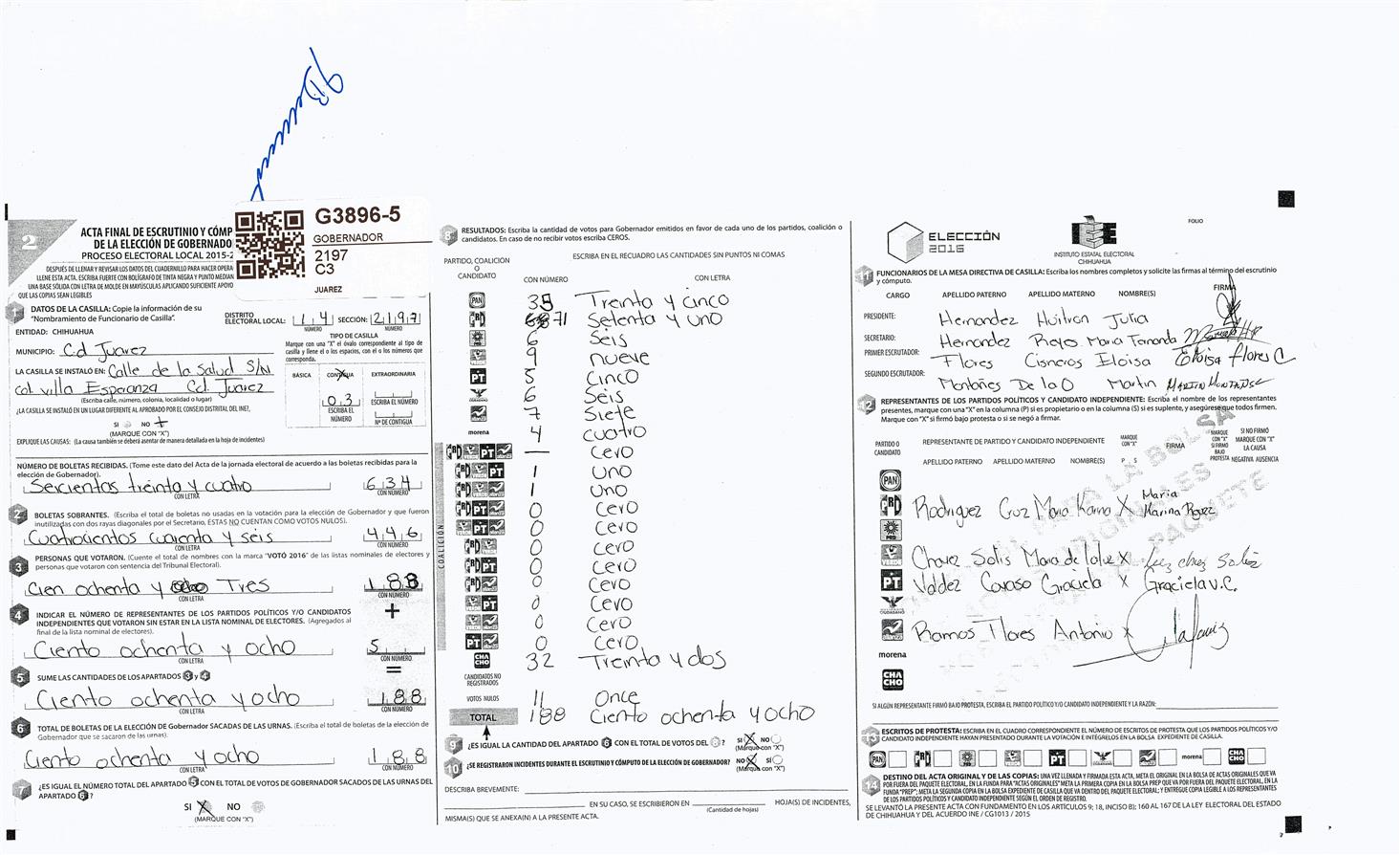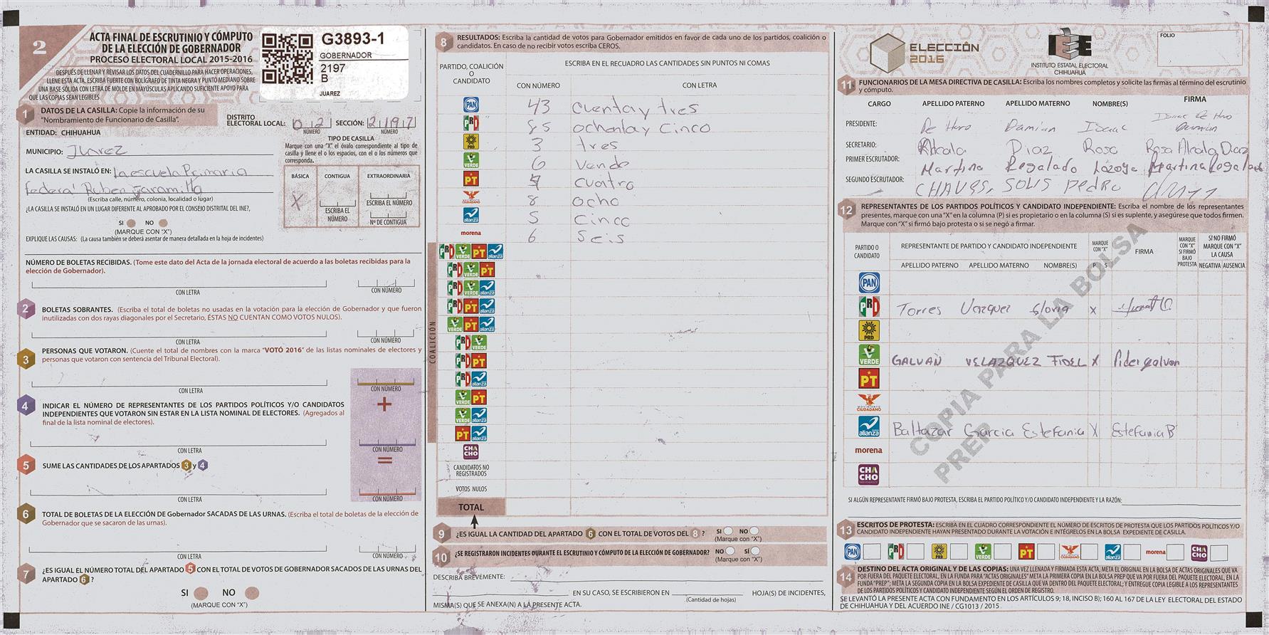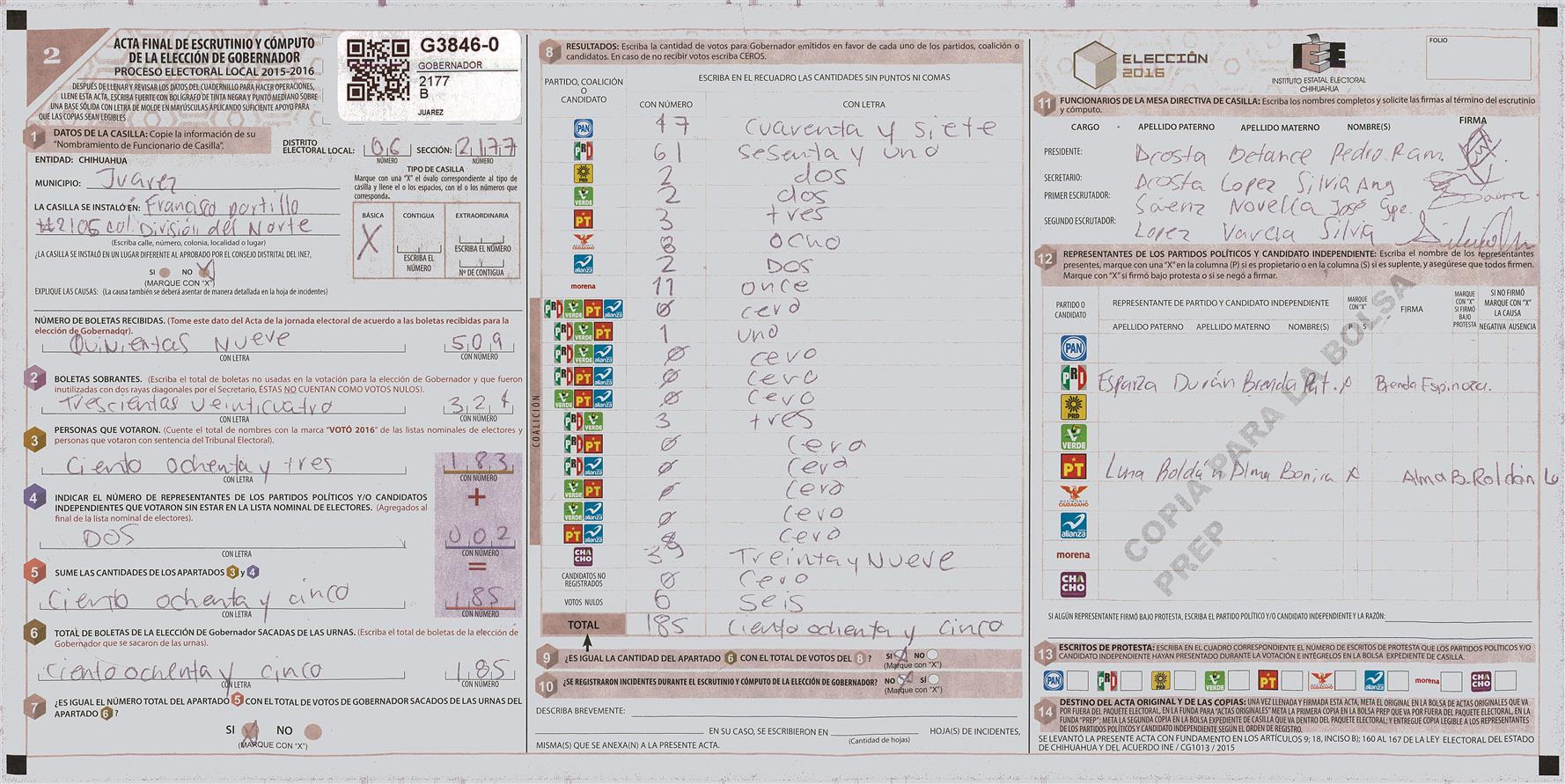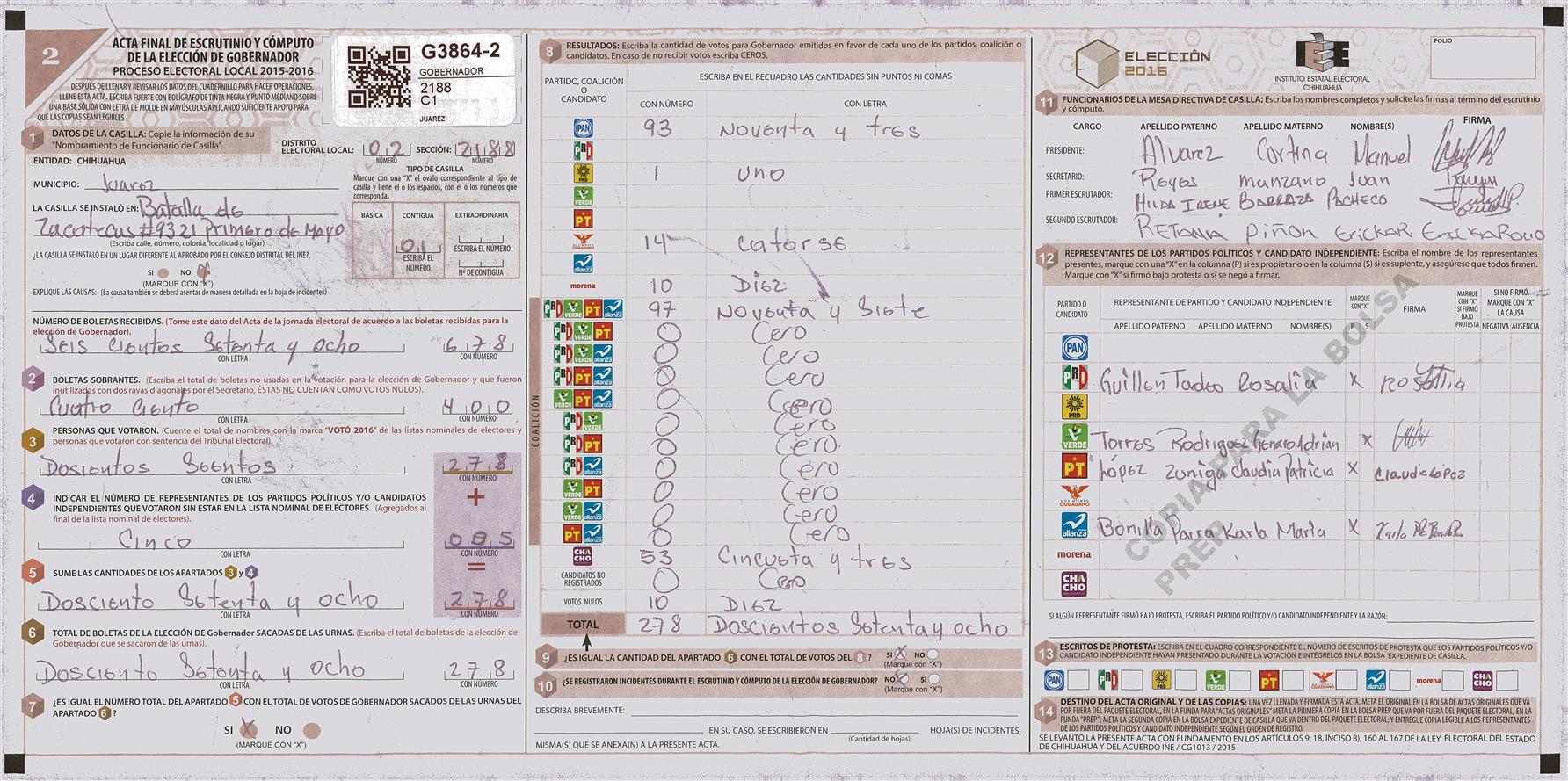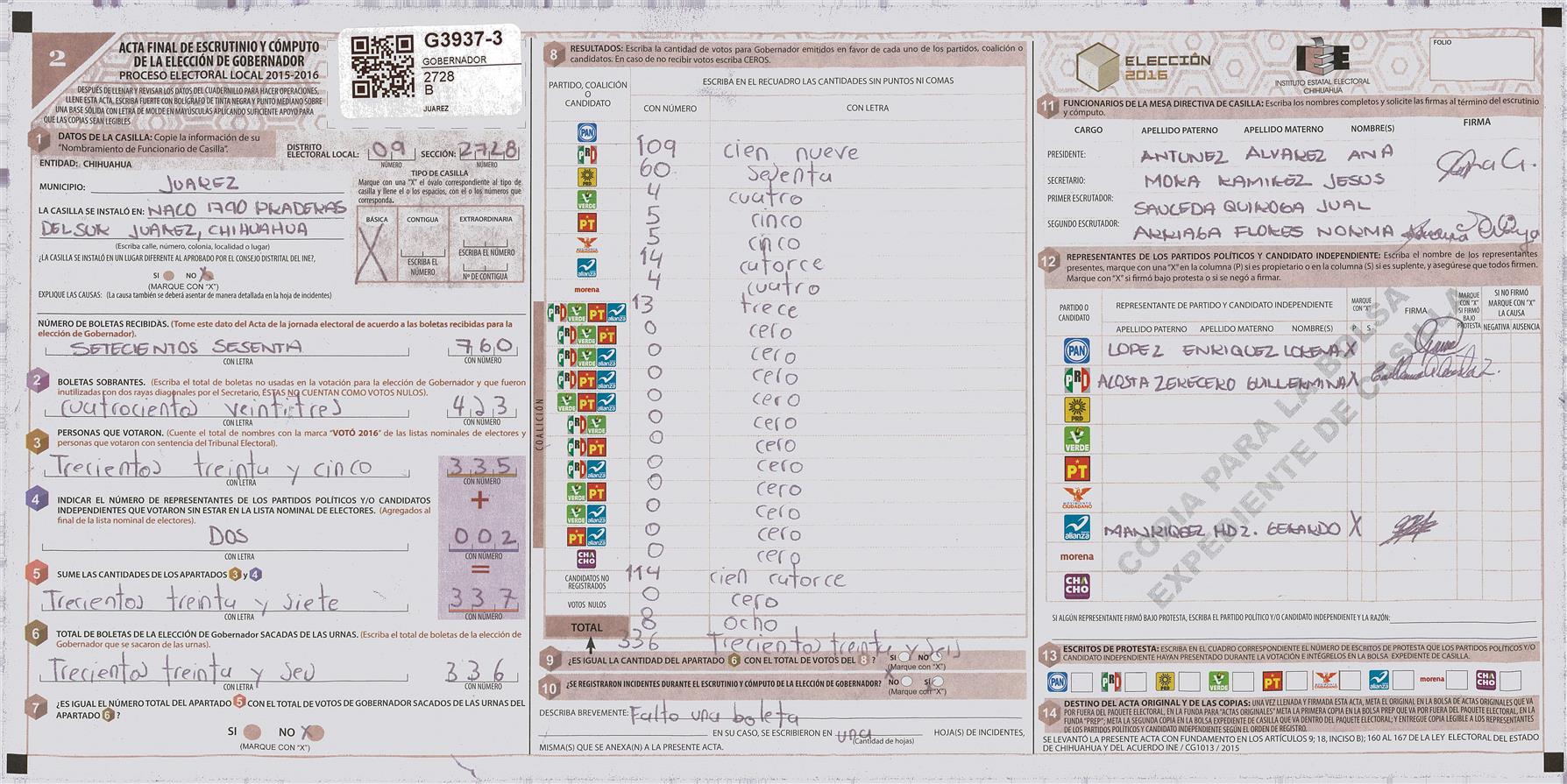 RESULTADOS POR CASILLA DEL MUNICIPIO DE JUAREZ PARA LA ELECCIÓN DE GOBERNADOR