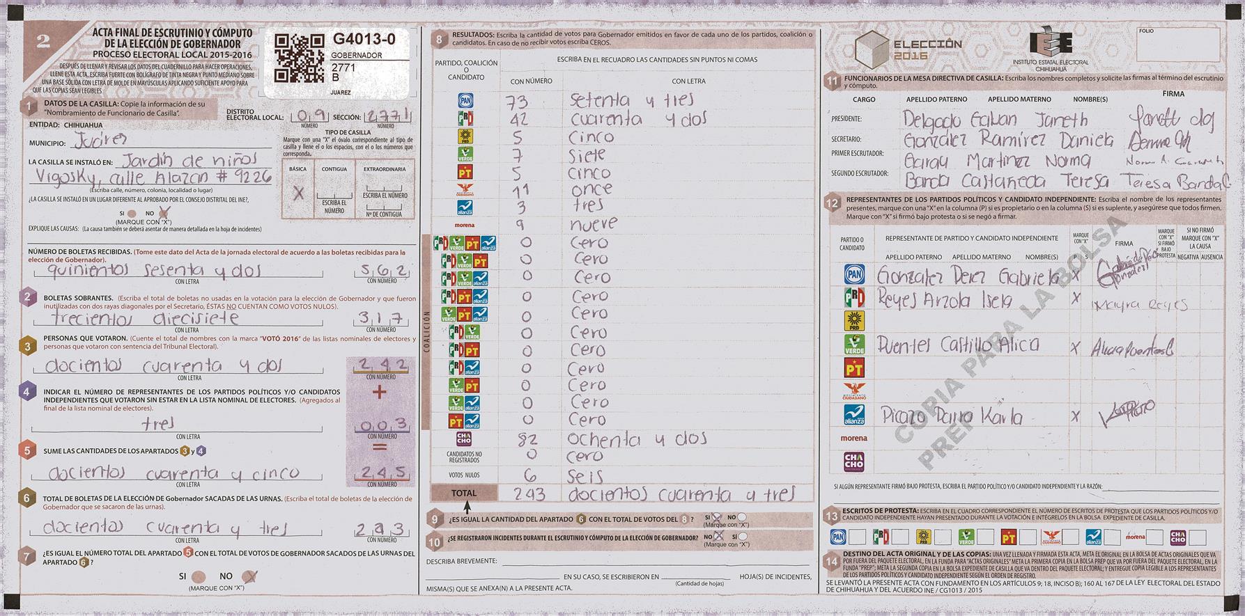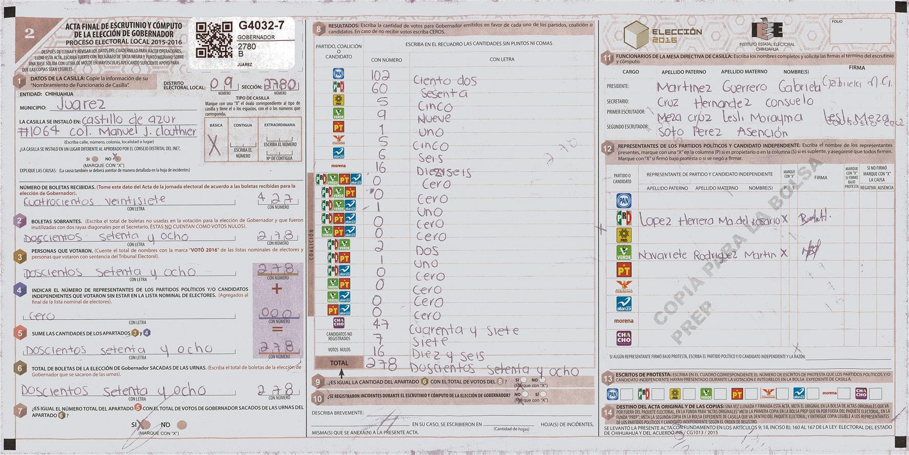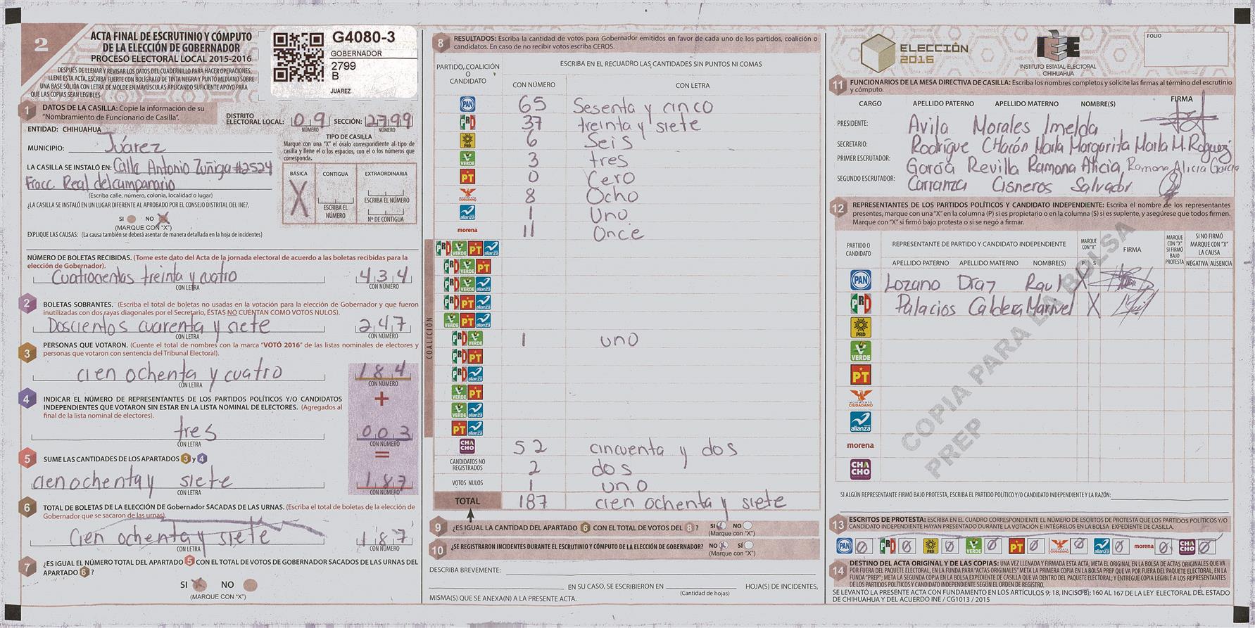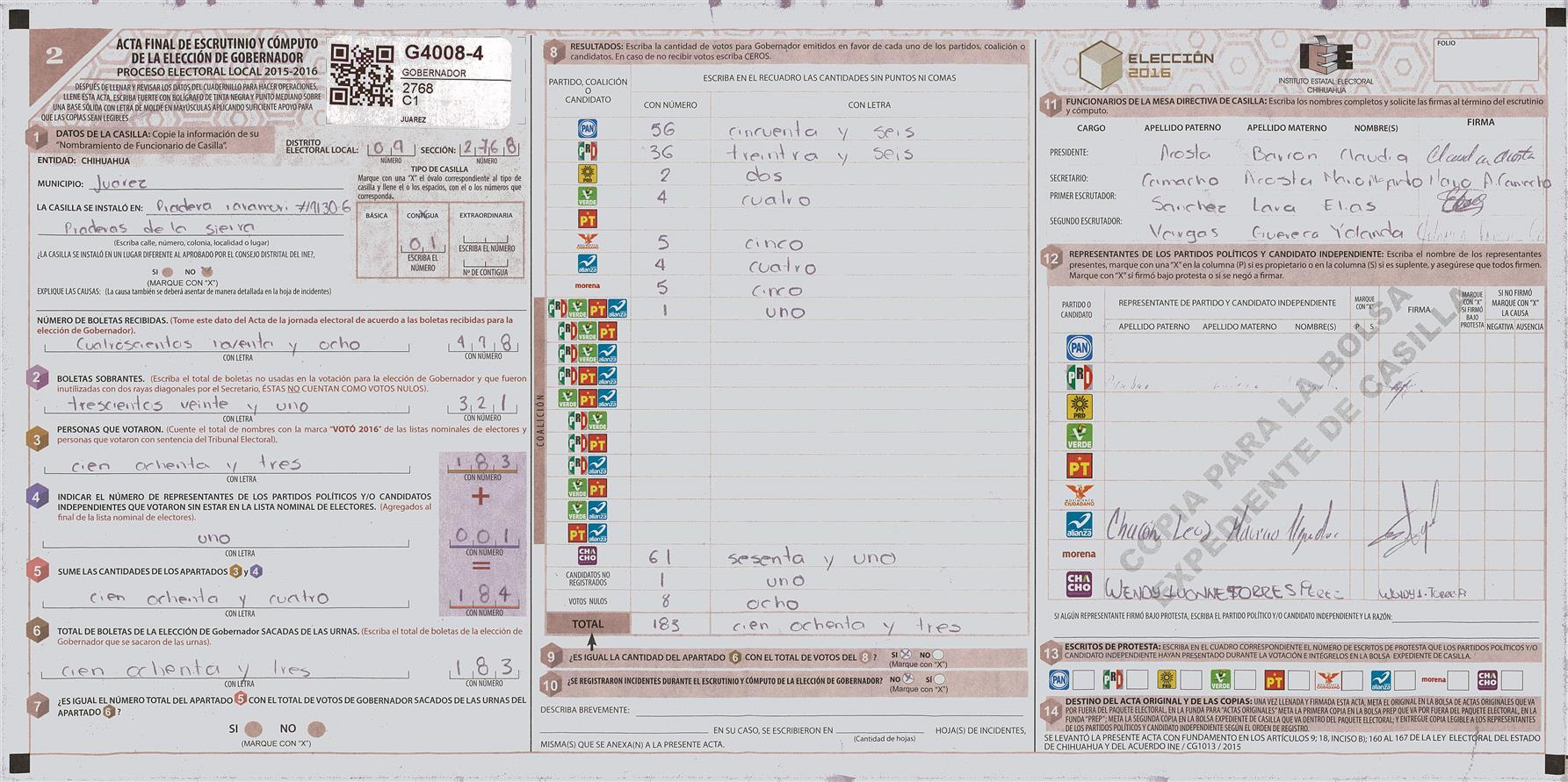 RESULTADOS POR CASILLA DEL MUNICIPIO DE JUAREZ PARA LA ELECCIÓN DE GOBERNADOR