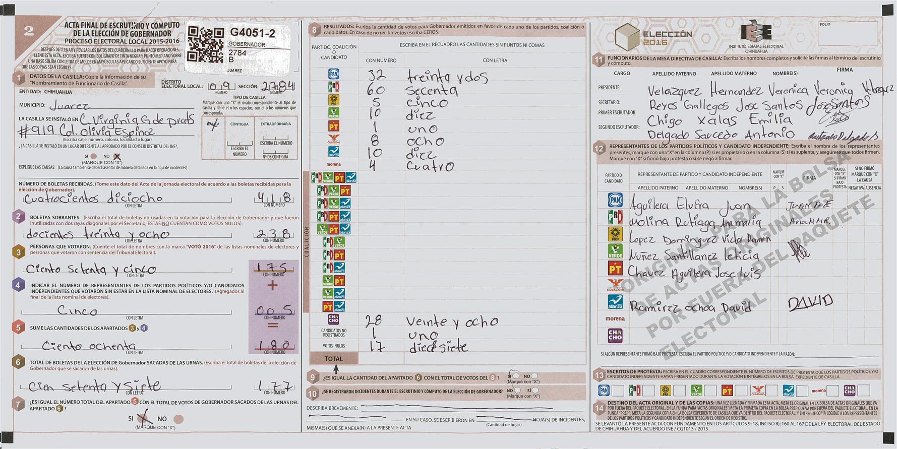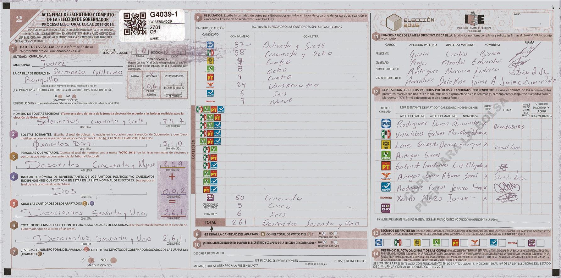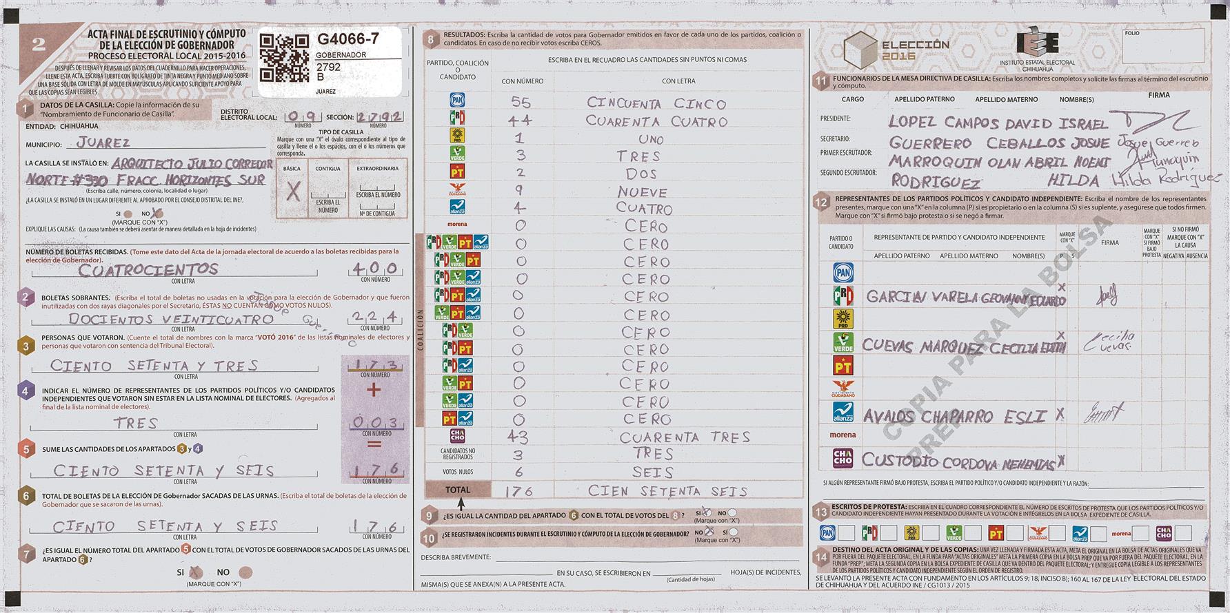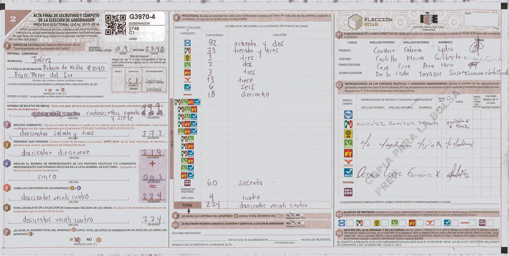 RESULTADOS POR CASILLA DEL MUNICIPIO DE JUAREZ PARA LA ELECCIÓN DE GOBERNADOR
