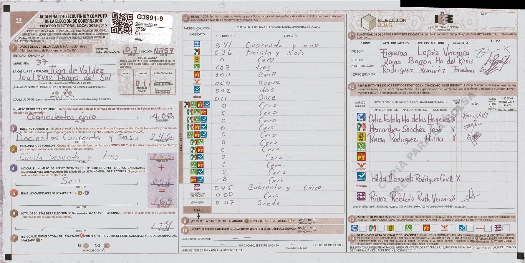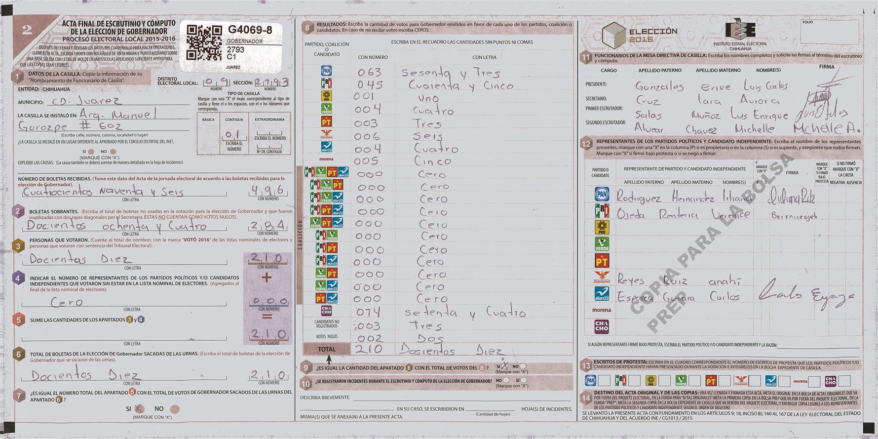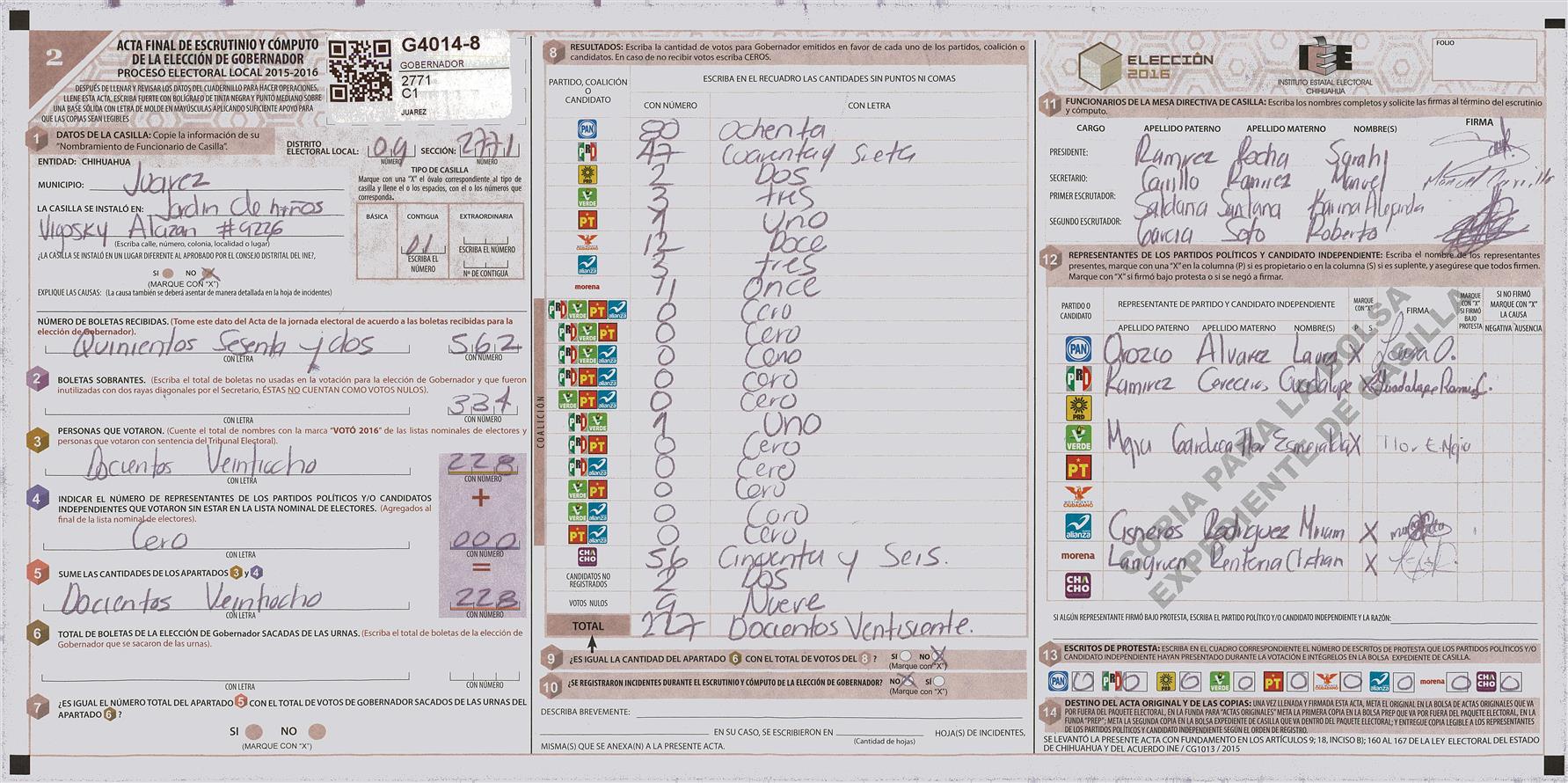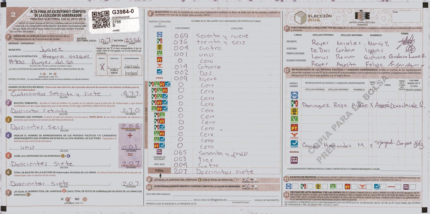 RESULTADOS POR CASILLA DEL MUNICIPIO DE JUAREZ PARA LA ELECCIÓN DE GOBERNADOR