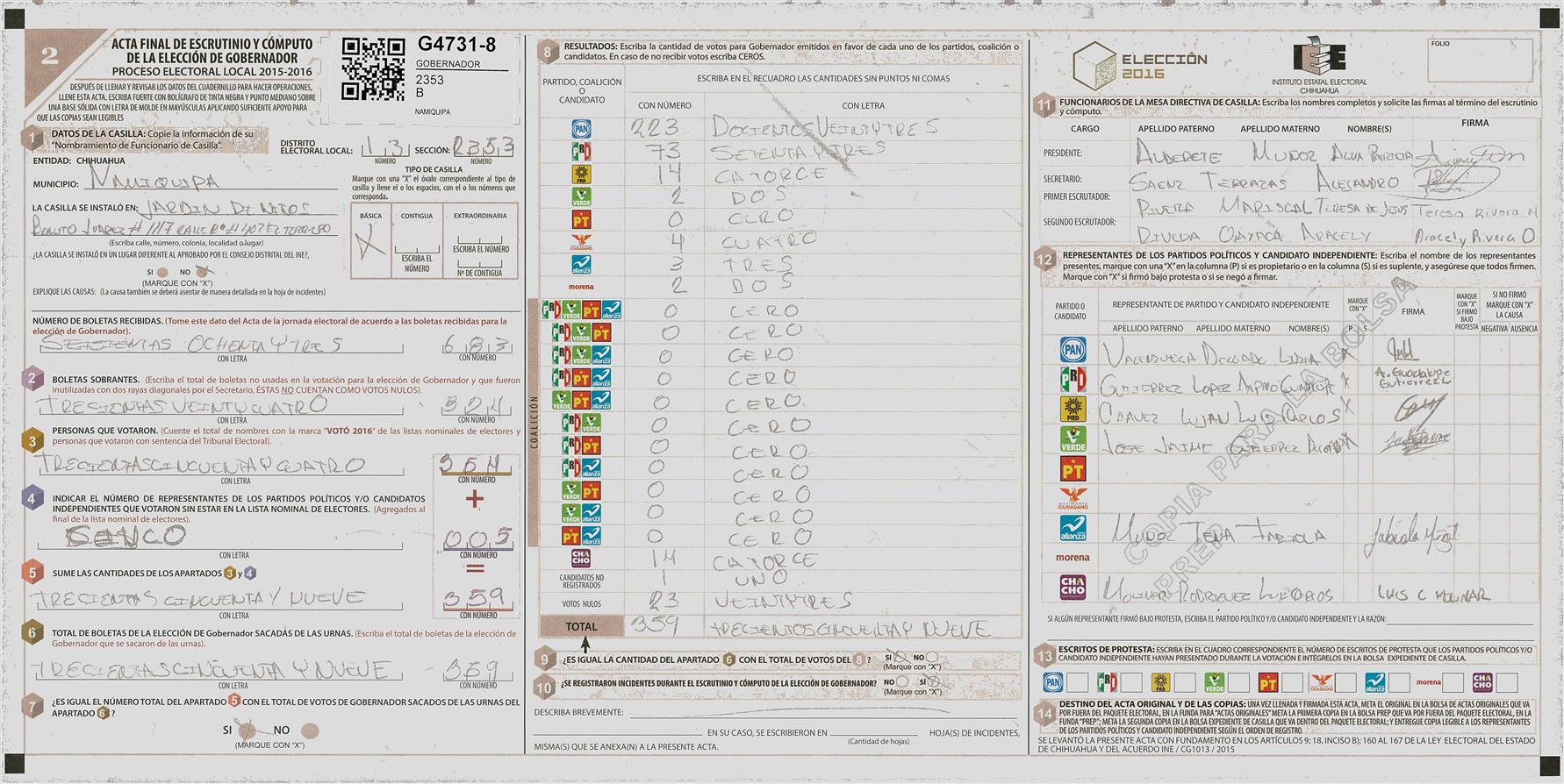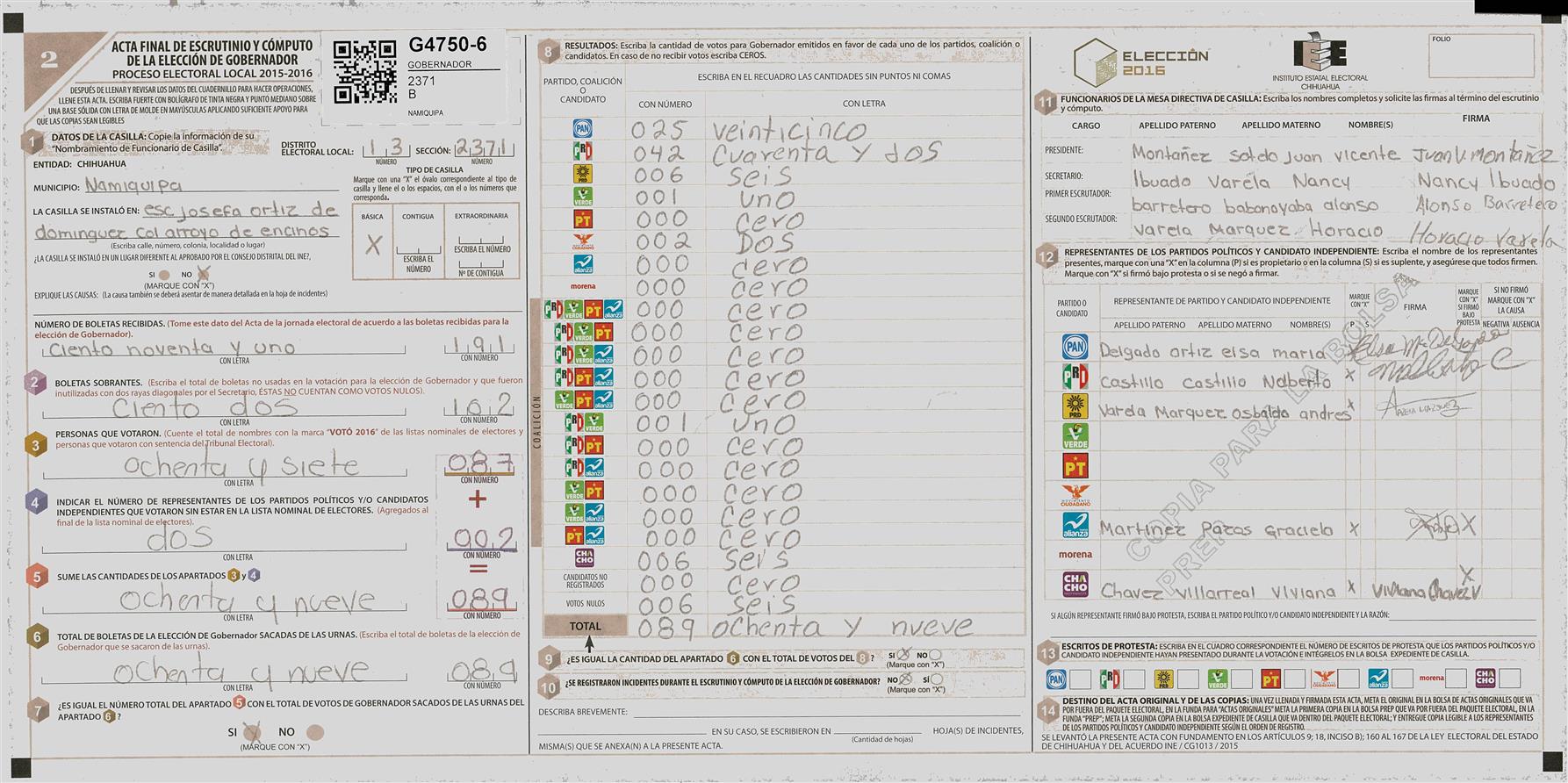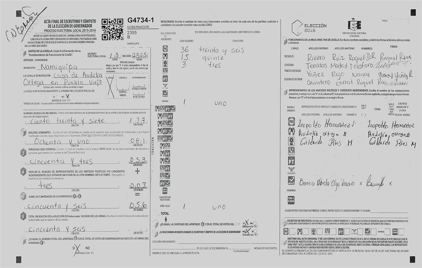 RESULTADOS POR CASILLA DEL MUNICIPIO DE NAMIQUIPA PARA LA ELECCIÓN DE GOBERNADOR