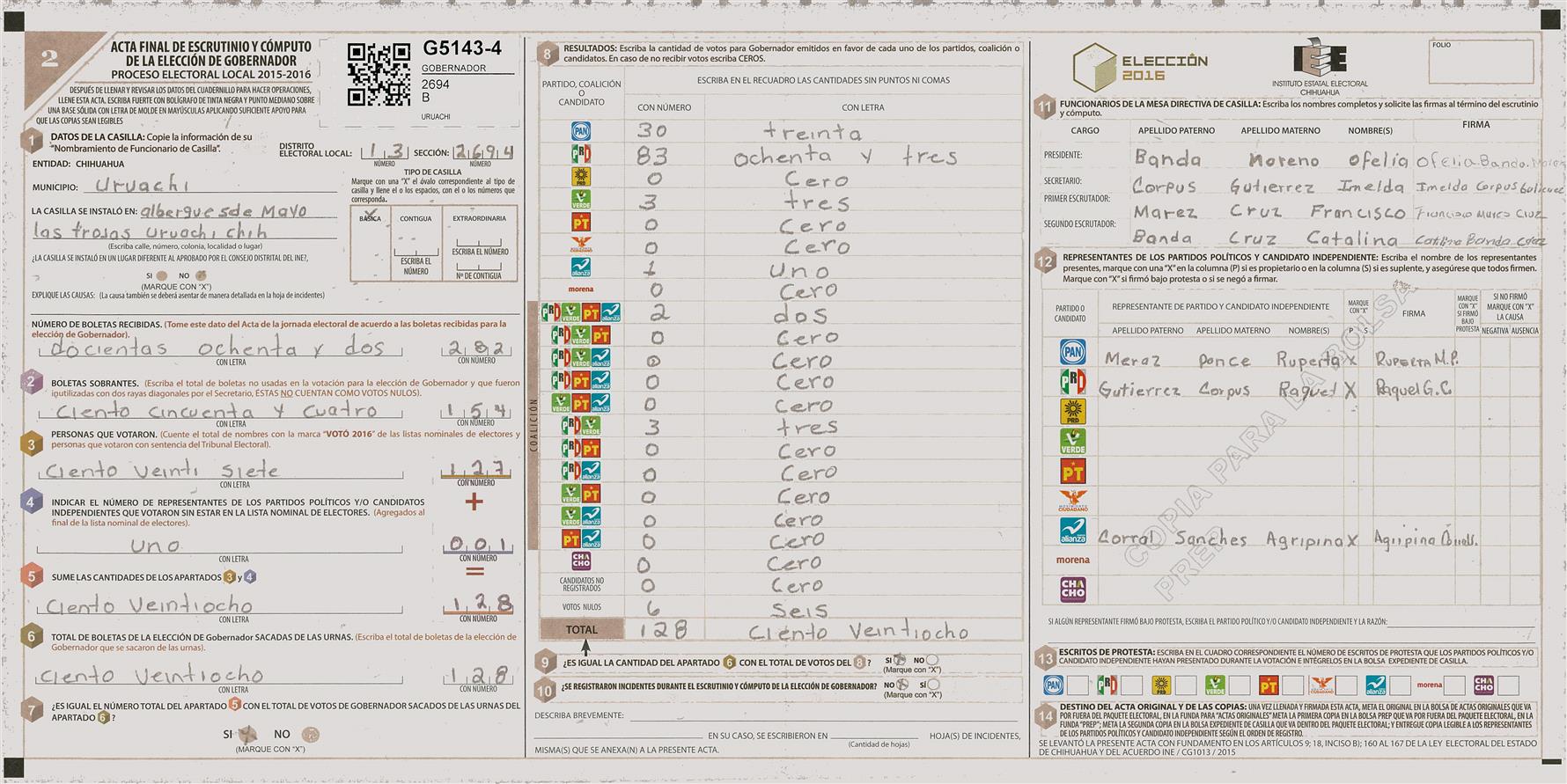 RESULTADOS POR CASILLA DEL MUNICIPIO DE URUACHI PARA LA ELECCIÓN DE GOBERNADOR