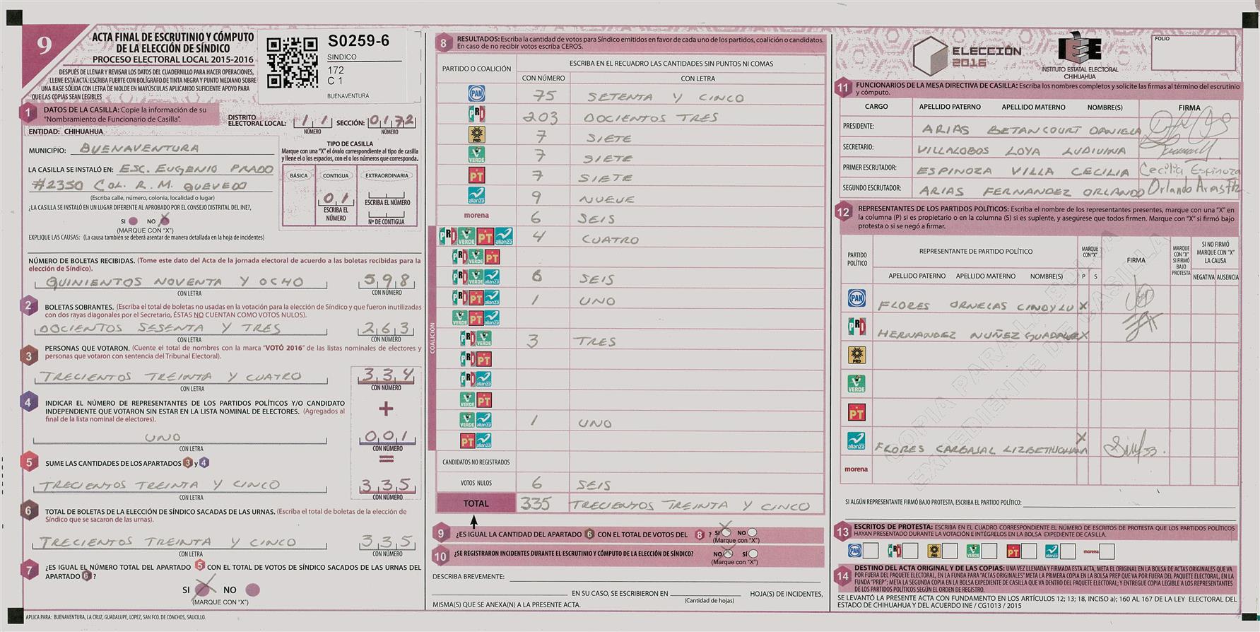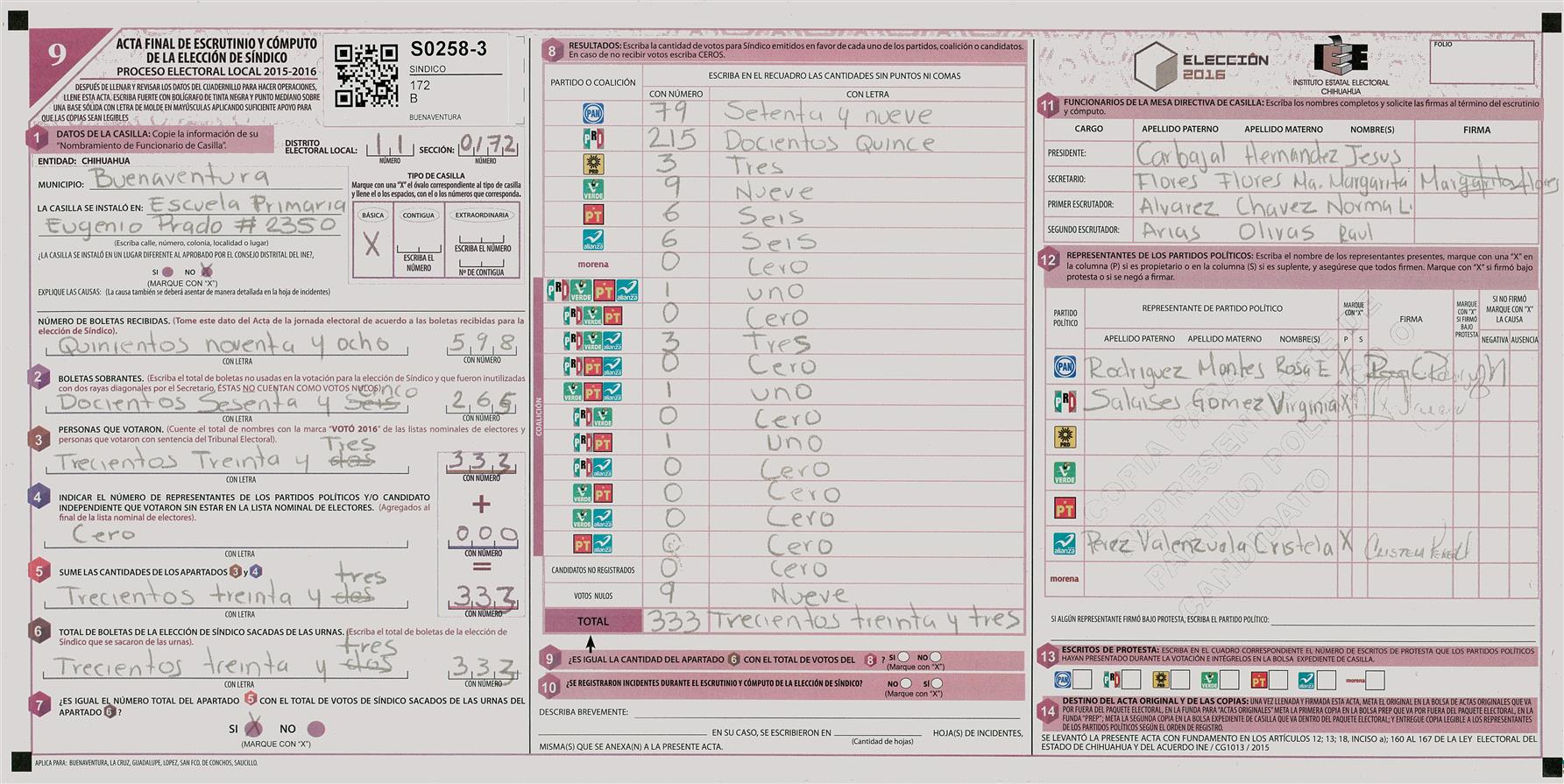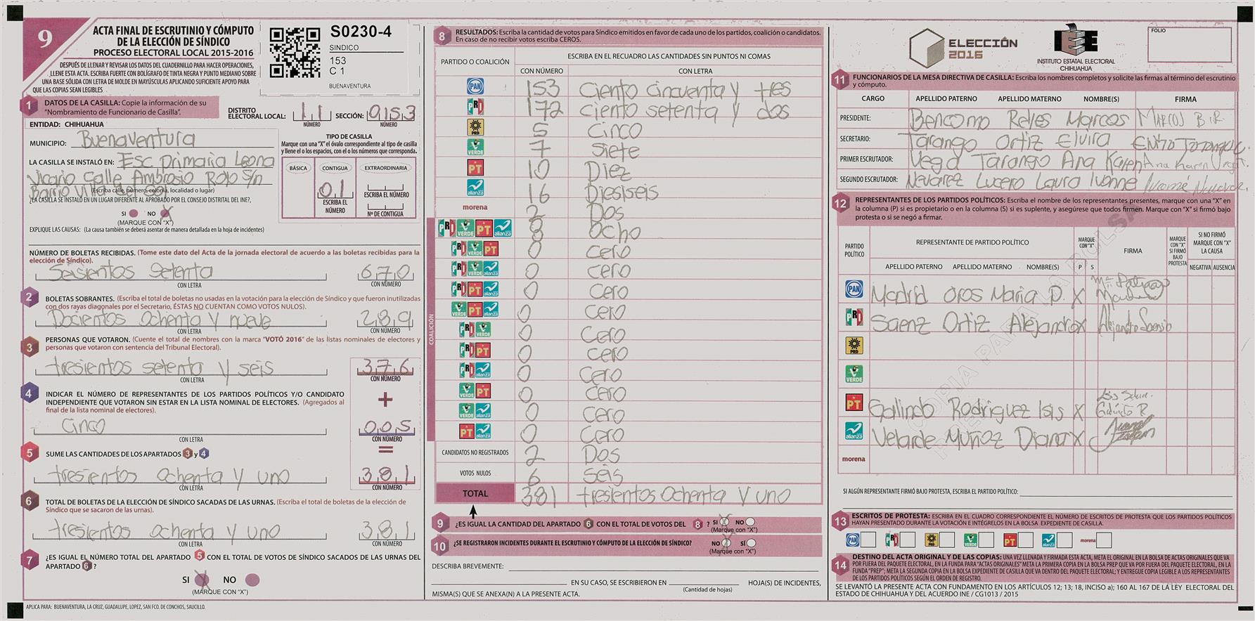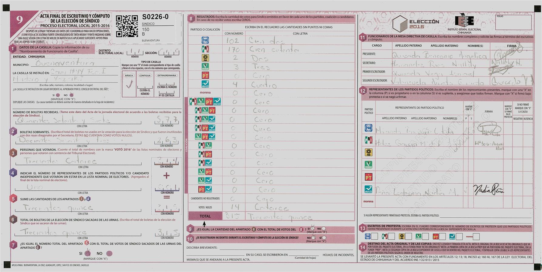 RESULTADOS POR CASILLA DEL MUNICIPIO DE BUENAVENTURA PARA LA ELECCIÓN DE SINDICO