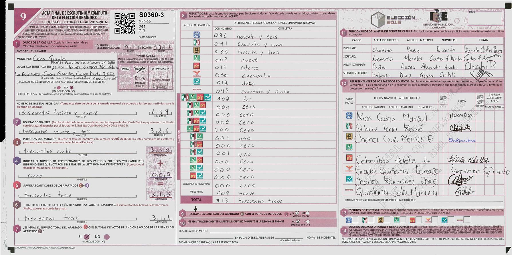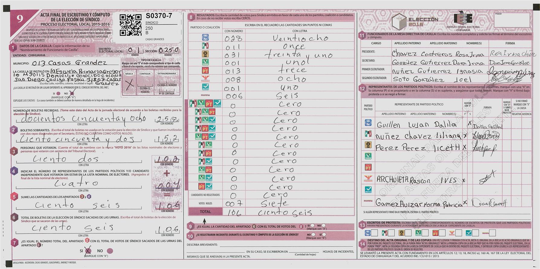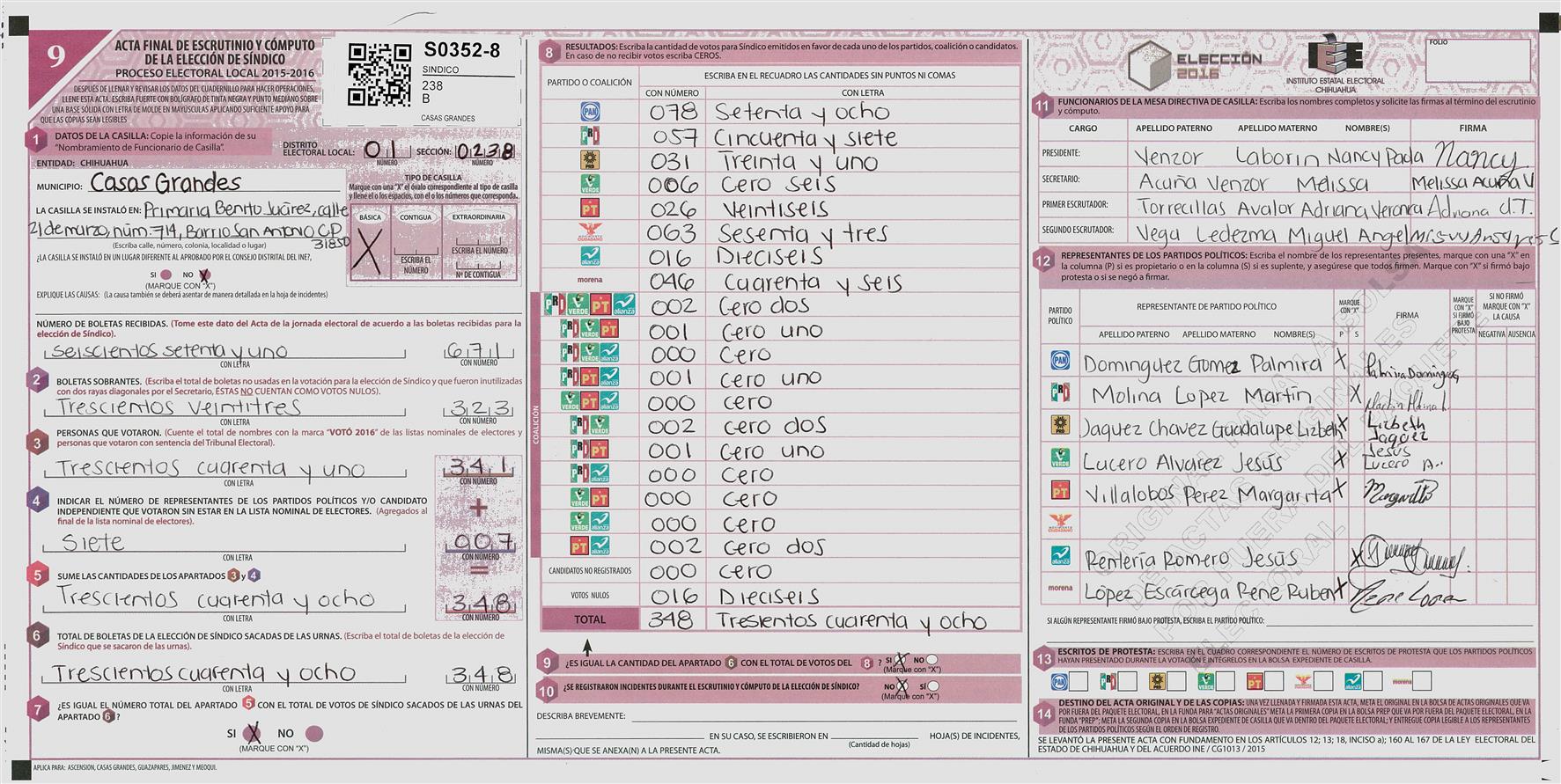 RESULTADOS POR CASILLA DEL MUNICIPIO DE CASAS GRANDES PARA LA ELECCIÓN DE SINDICO