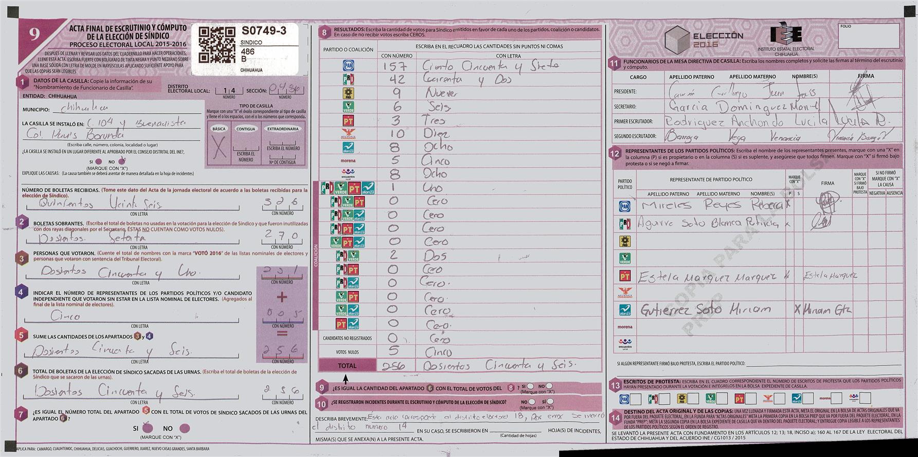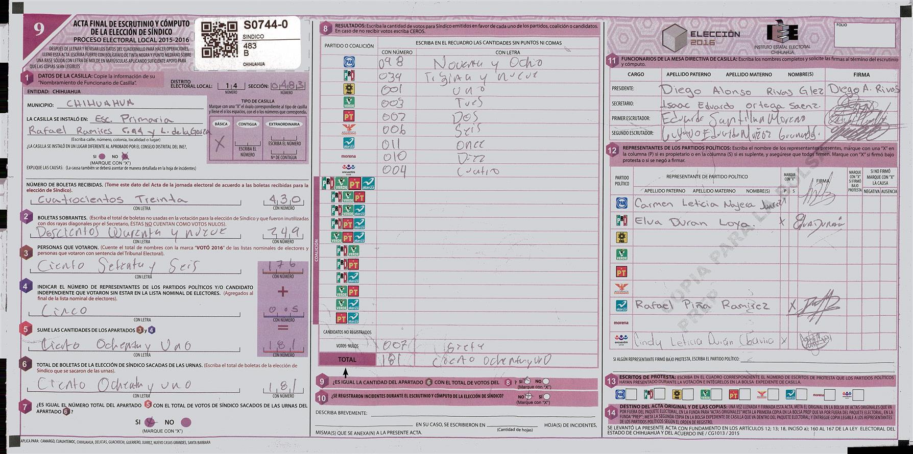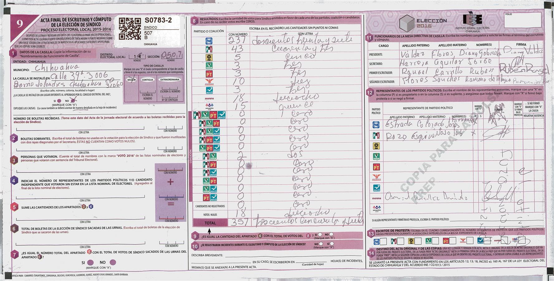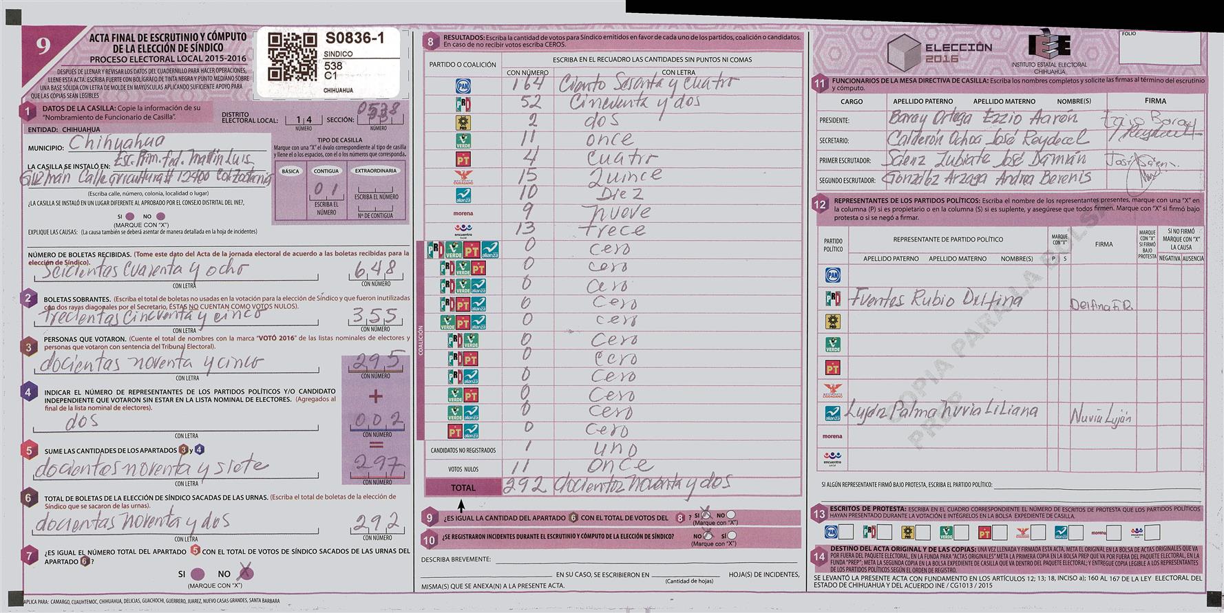 RESULTADOS POR CASILLA DEL MUNICIPIO DE CHIHUAHUA PARA LA ELECCIÓN DE SINDICO