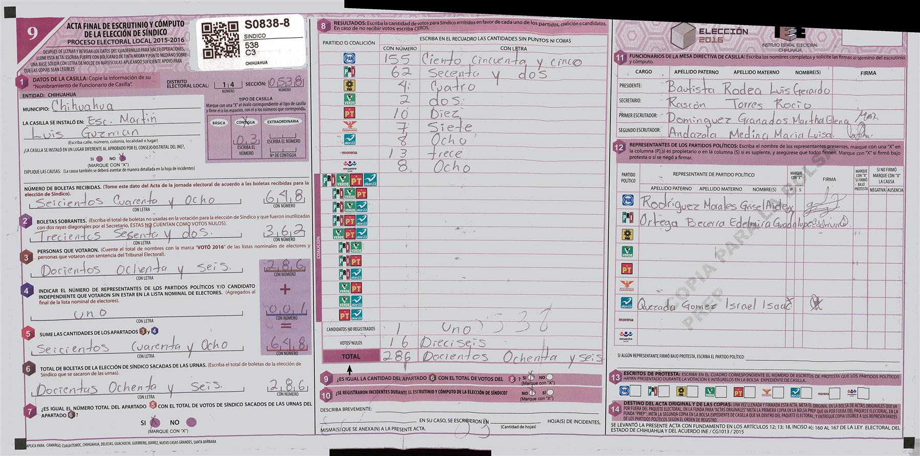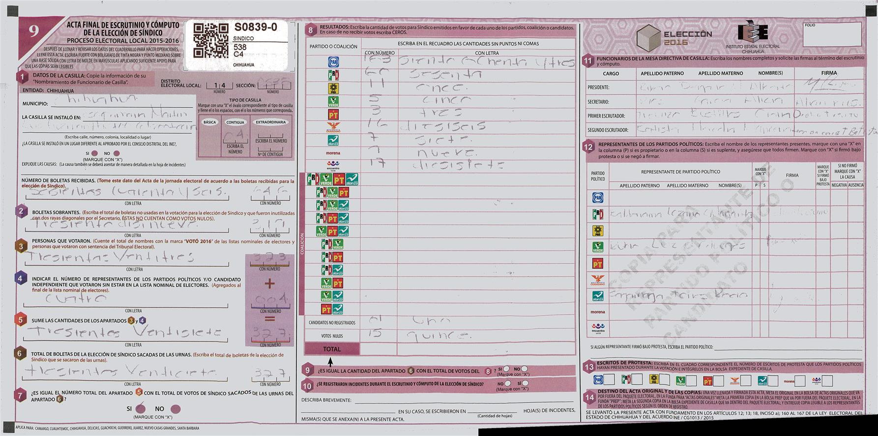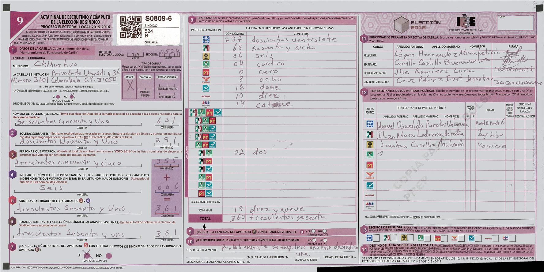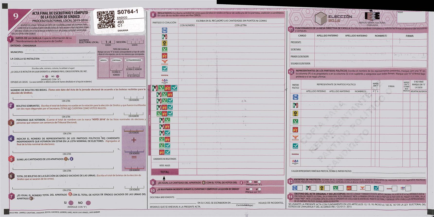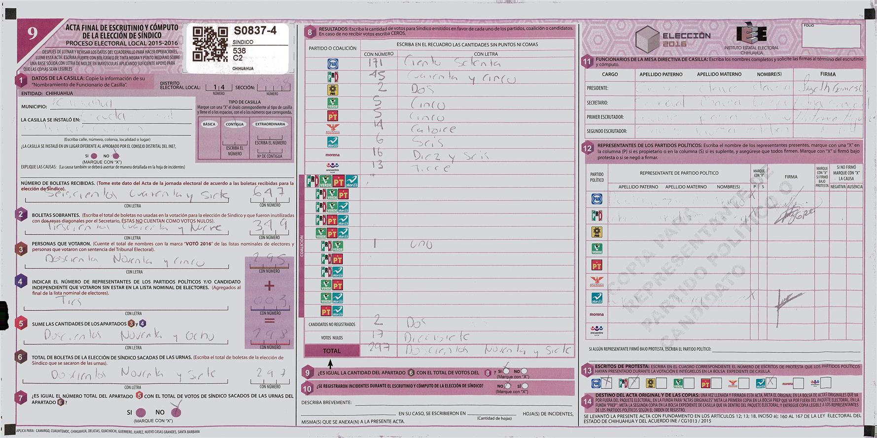 RESULTADOS POR CASILLA DEL MUNICIPIO DE CHIHUAHUA PARA LA ELECCIÓN DE SINDICO