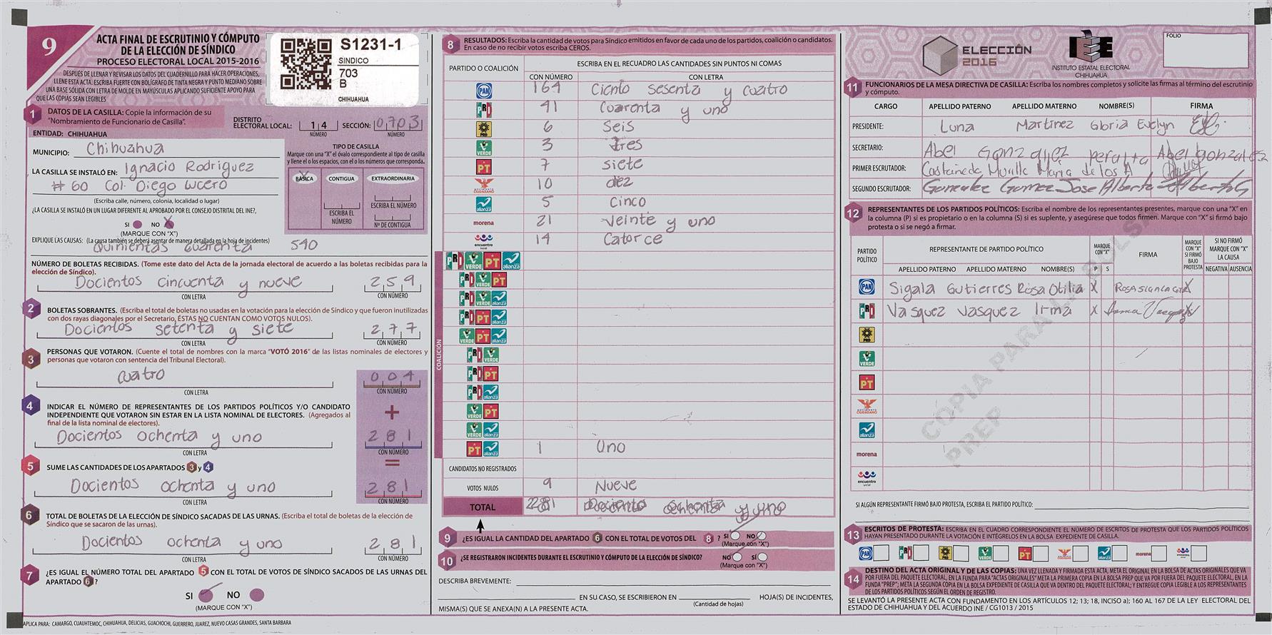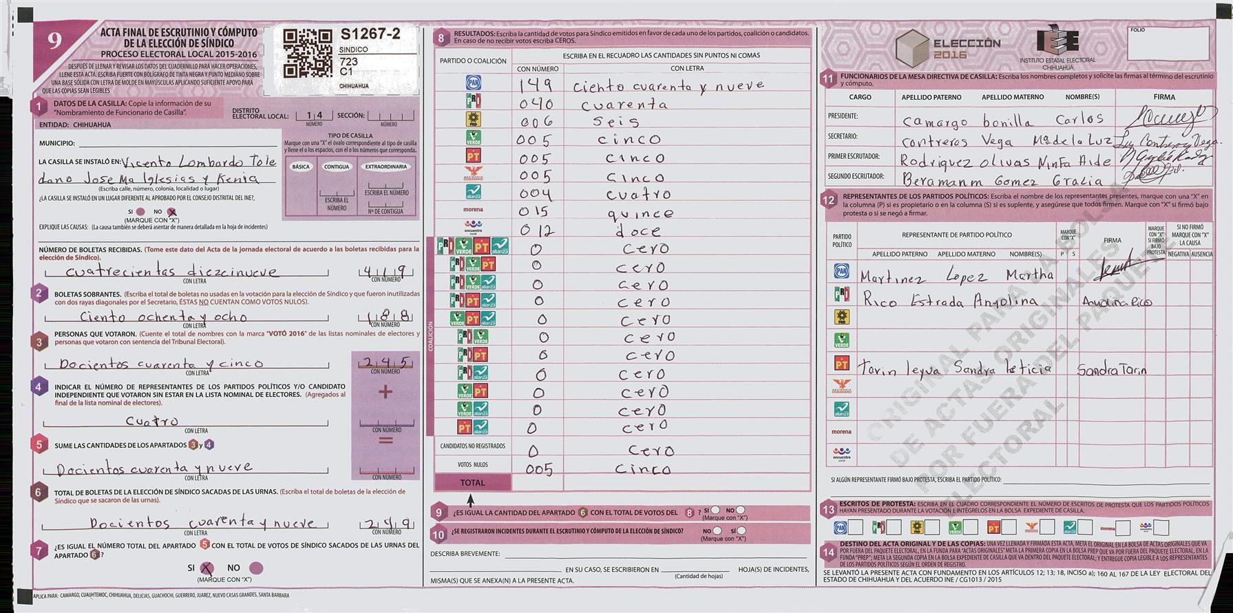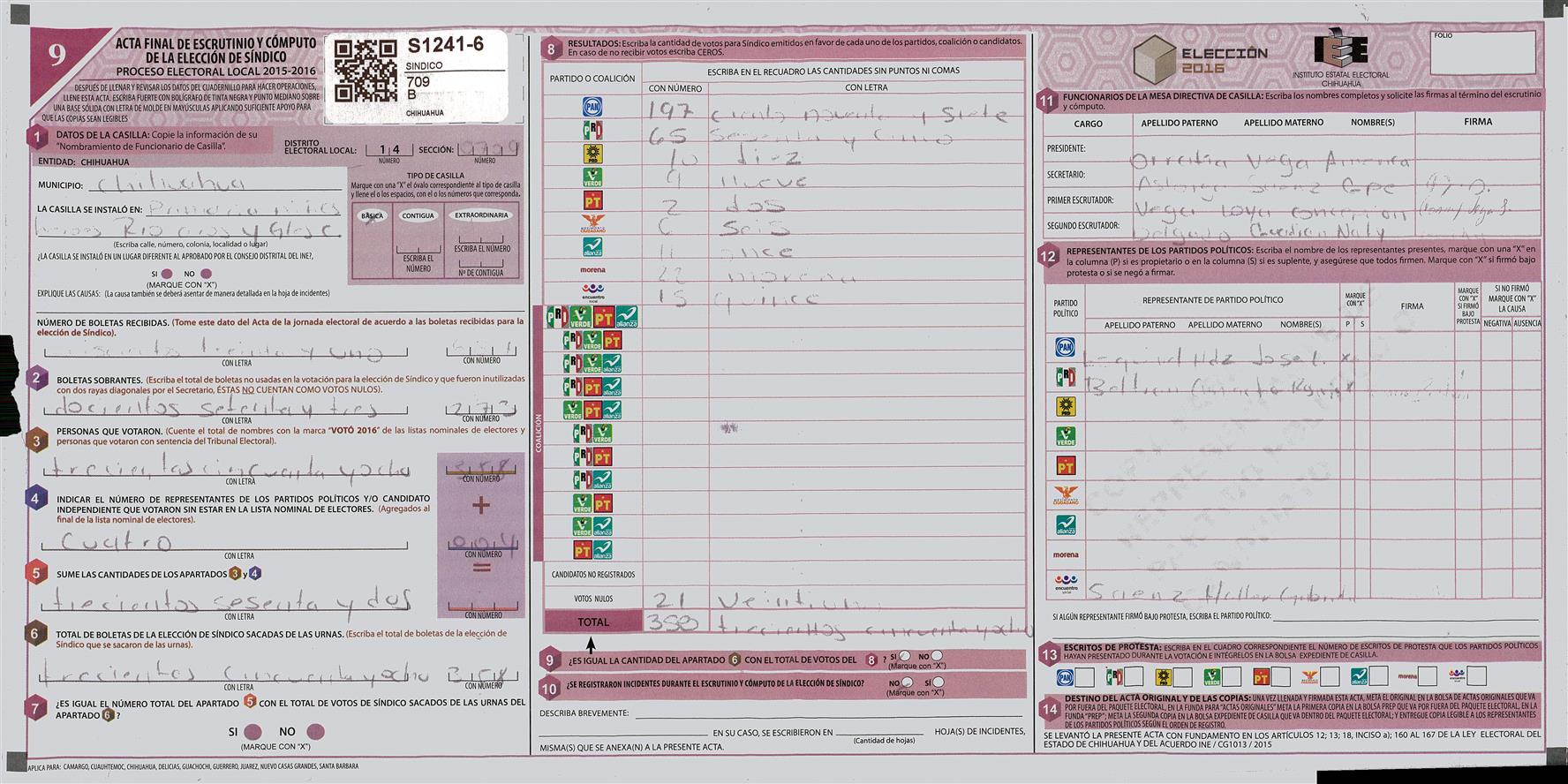 RESULTADOS POR CASILLA DEL MUNICIPIO DE CHIHUAHUA PARA LA ELECCIÓN DE SINDICO