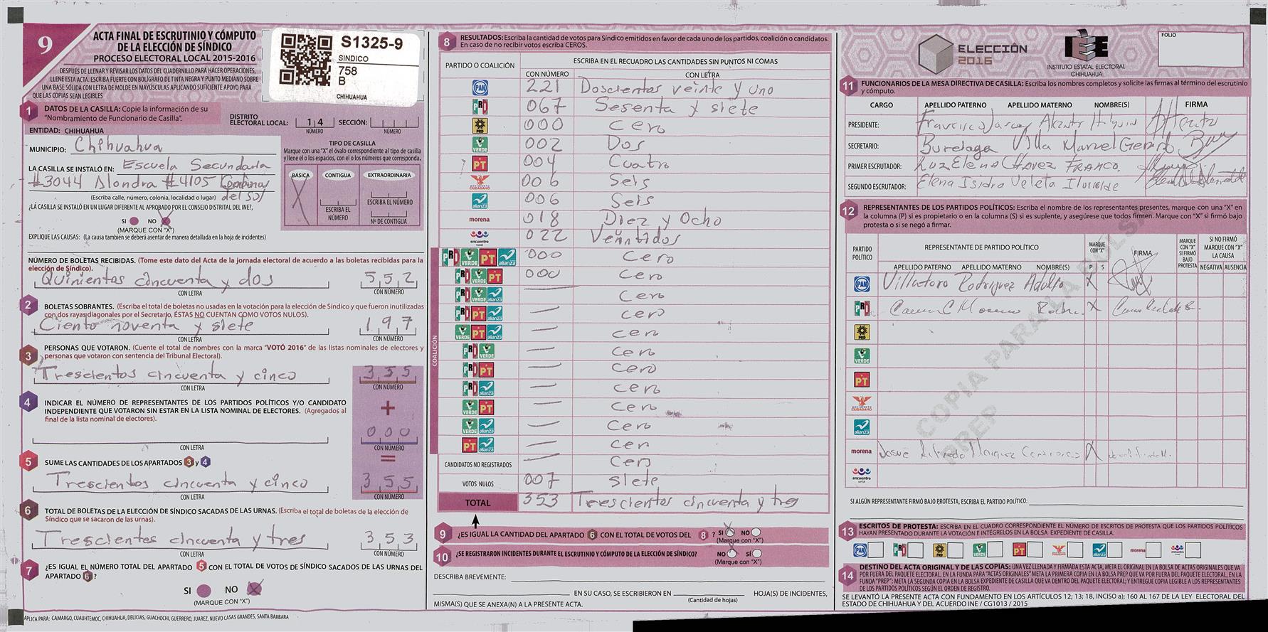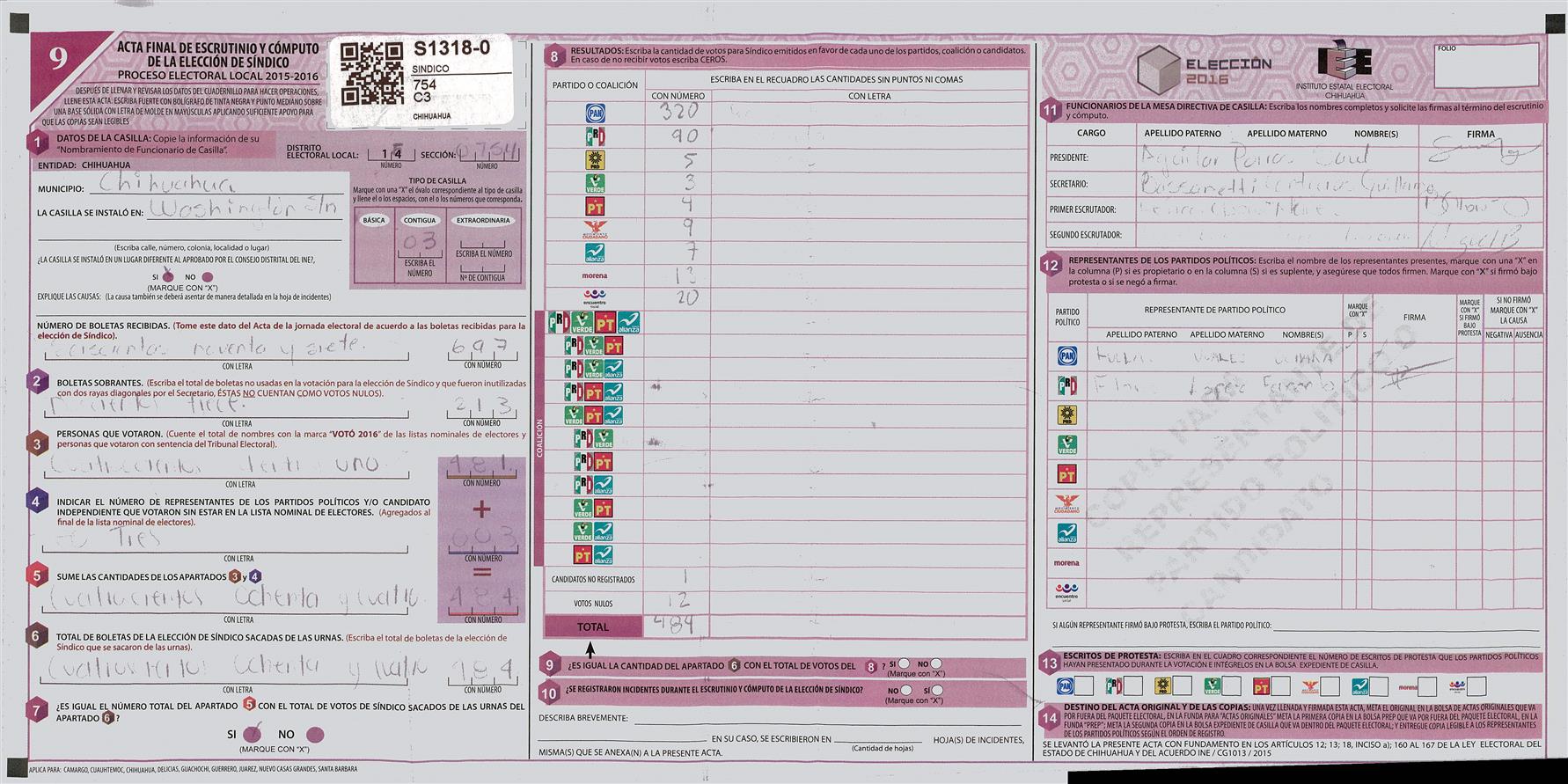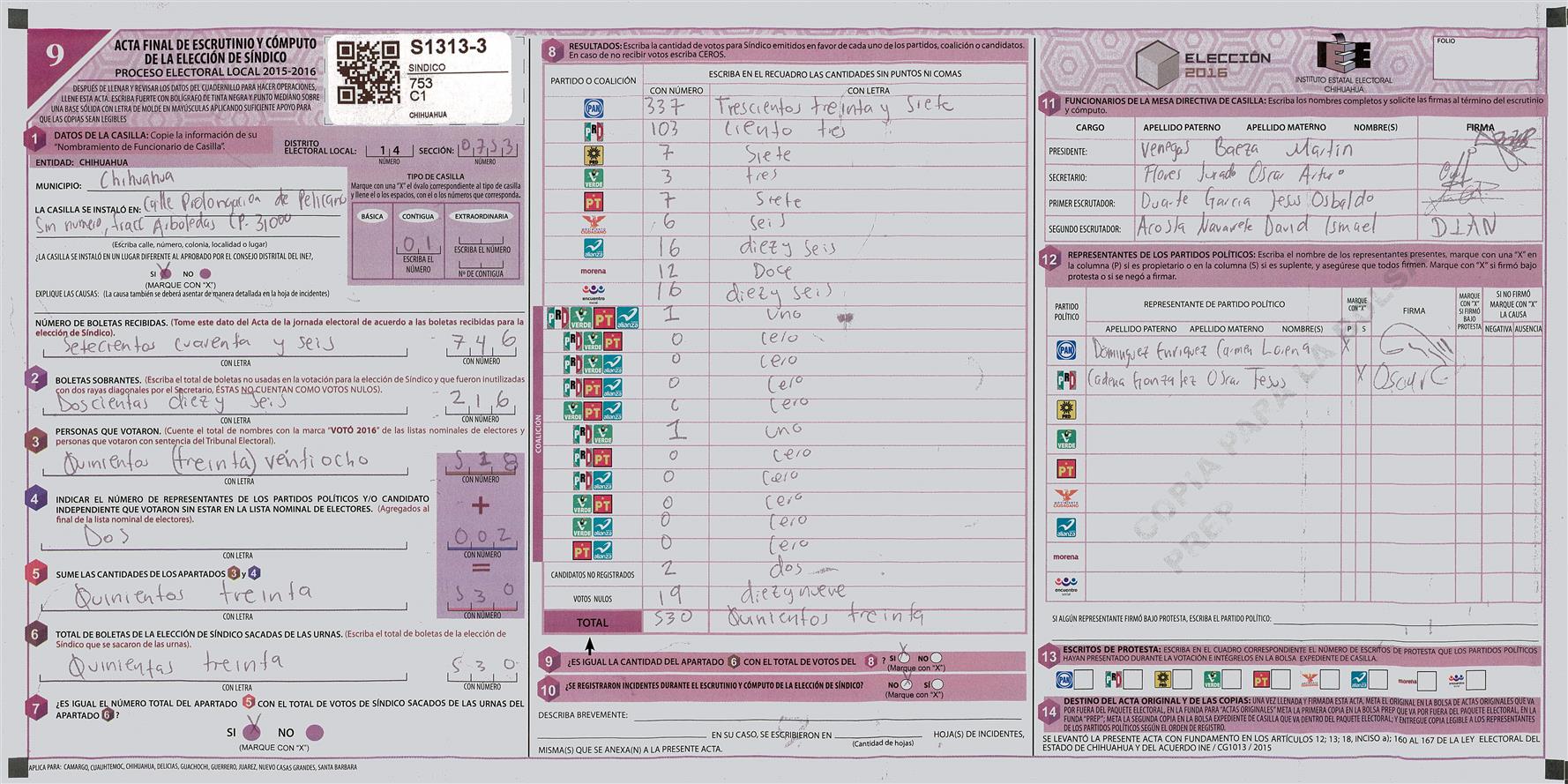 RESULTADOS POR CASILLA DEL MUNICIPIO DE CHIHUAHUA PARA LA ELECCIÓN DE SINDICO