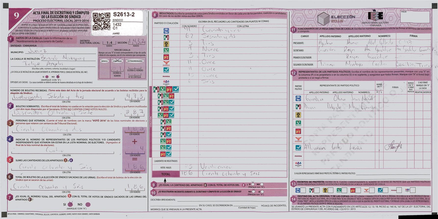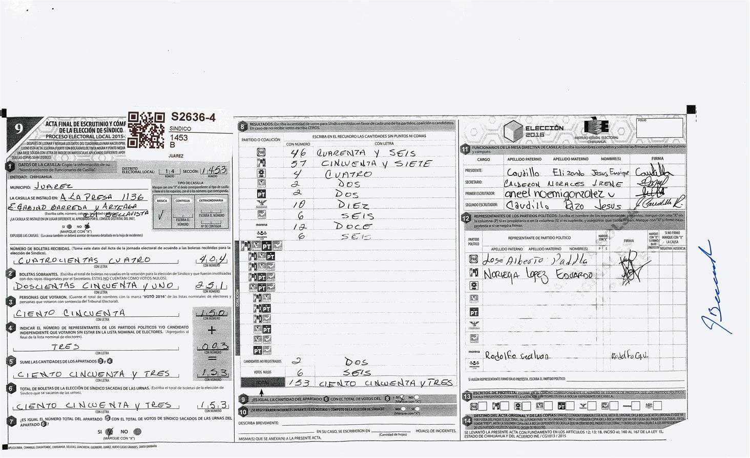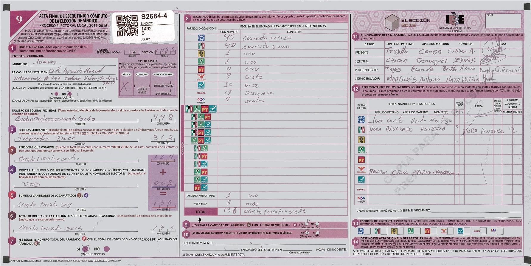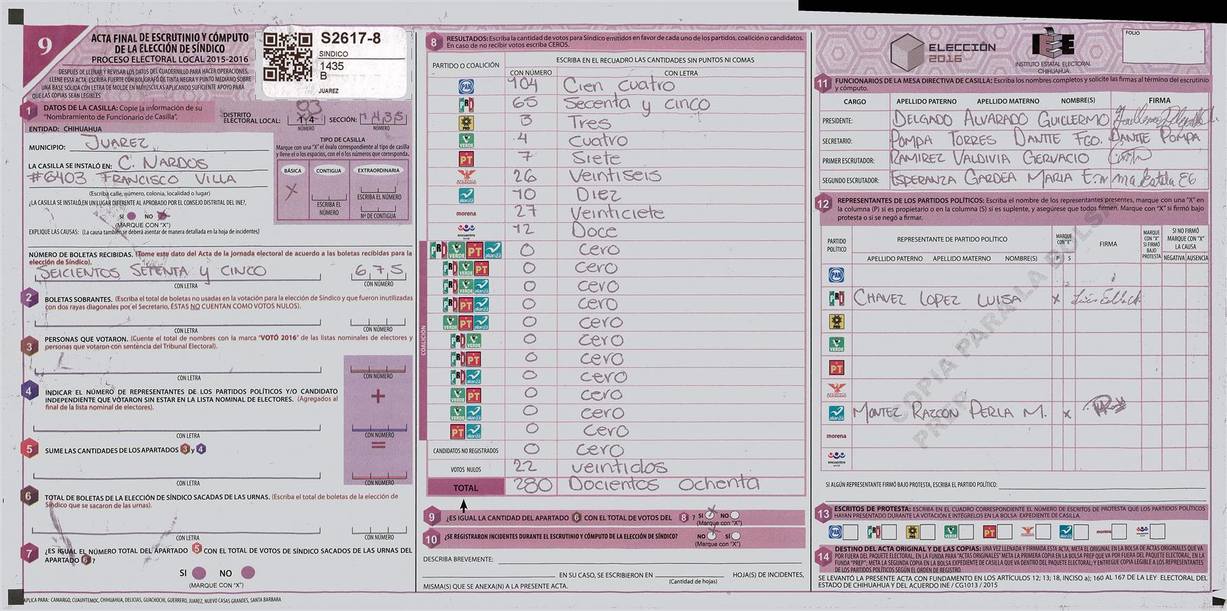 RESULTADOS POR CASILLA DEL MUNICIPIO DE JUAREZ PARA LA ELECCIÓN DE SINDICO