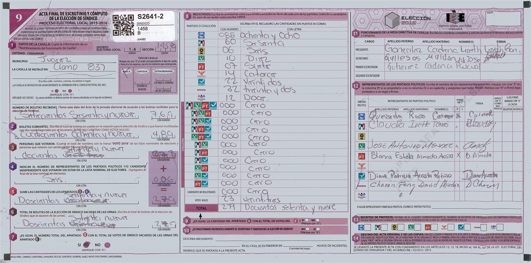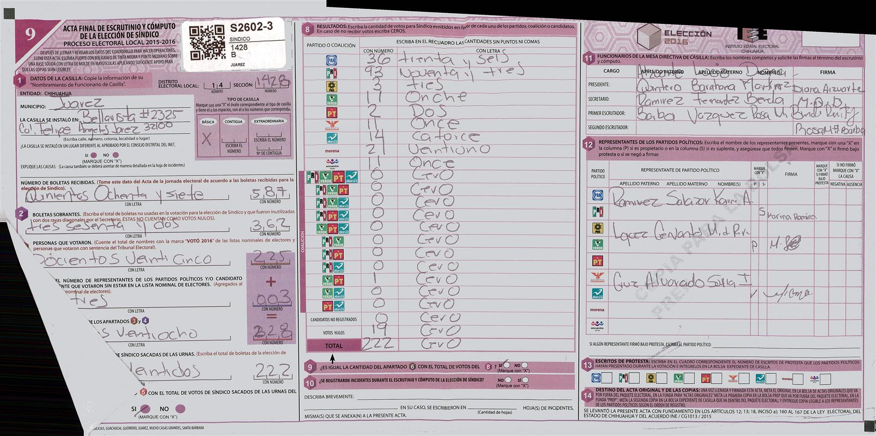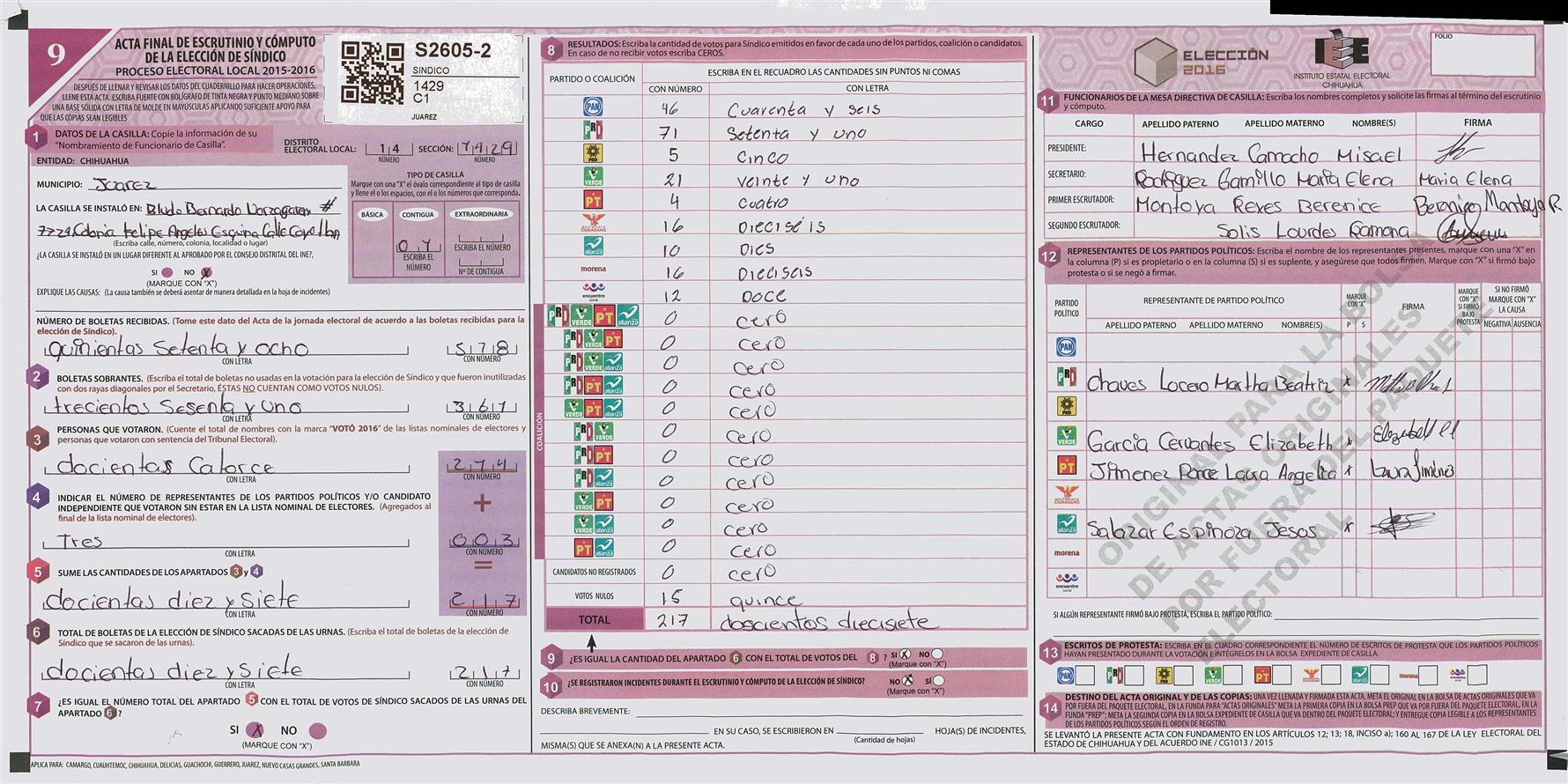 RESULTADOS POR CASILLA DEL MUNICIPIO DE JUAREZ PARA LA ELECCIÓN DE SINDICO