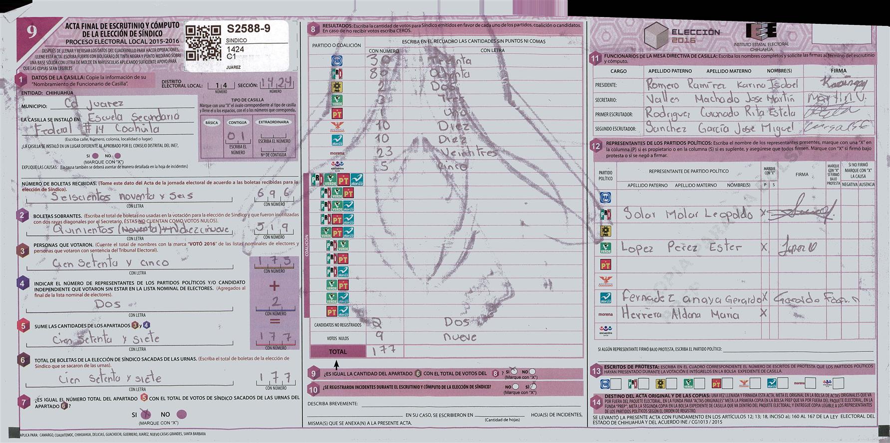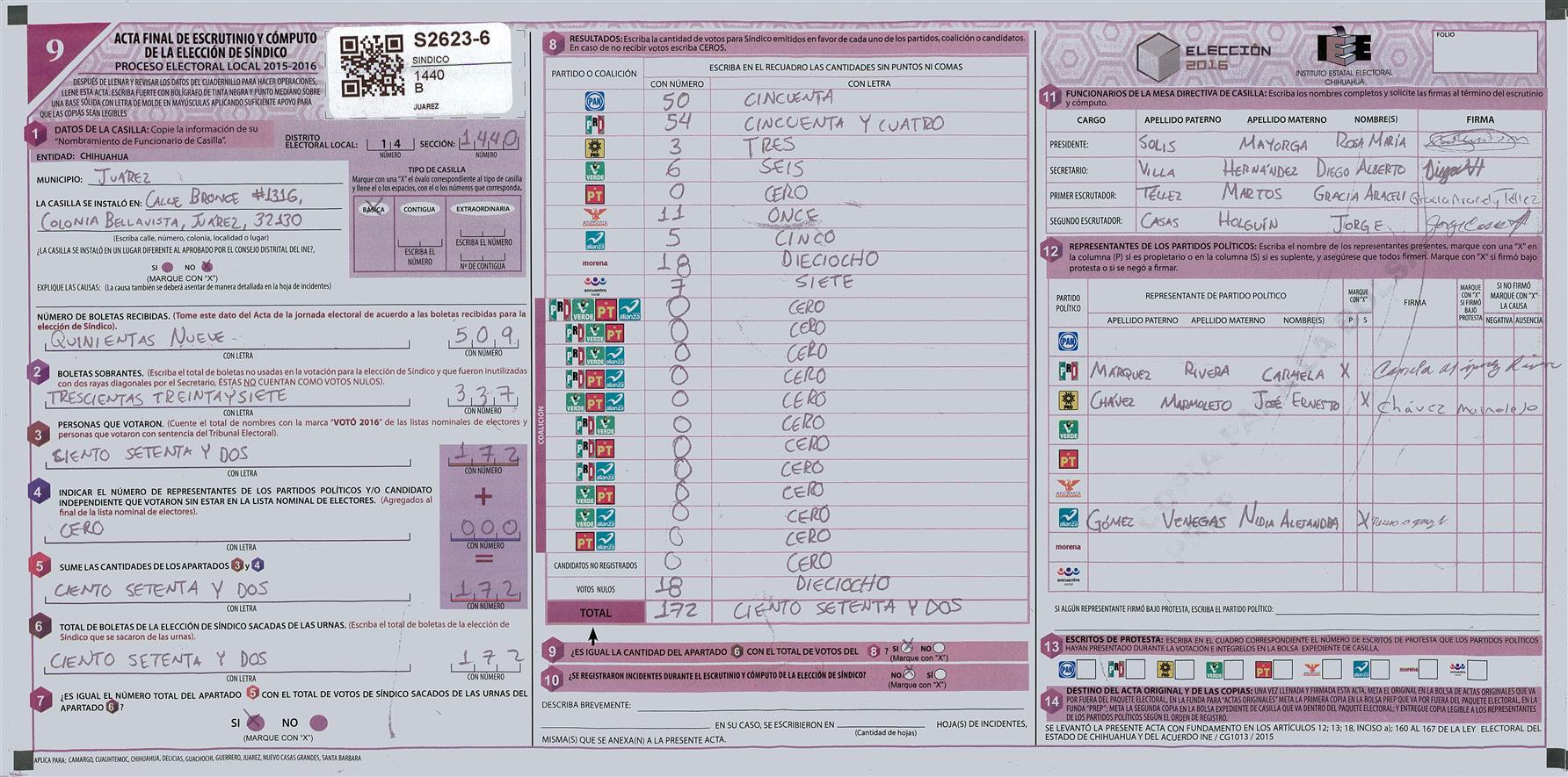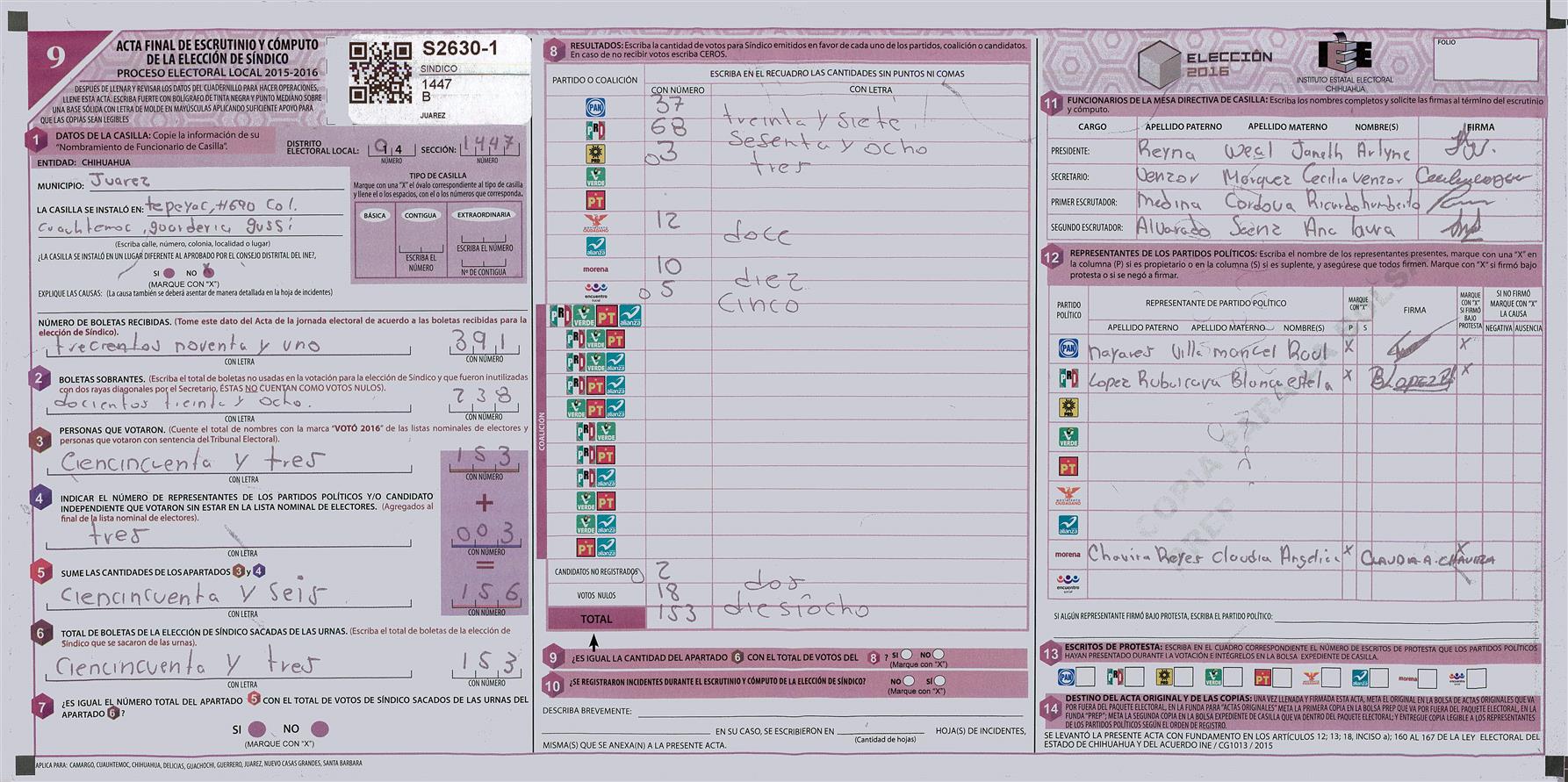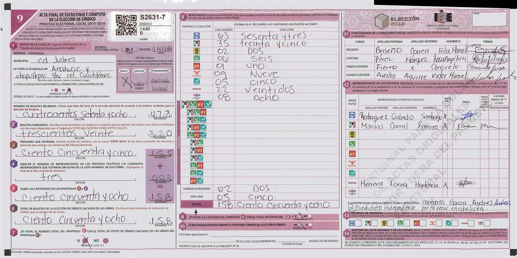 RESULTADOS POR CASILLA DEL MUNICIPIO DE JUAREZ PARA LA ELECCIÓN DE SINDICO
